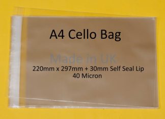 Pack of 25 – A4 Cello – 220mm x 297mm + 30mm Self Seal Flap – Cellophane Artist Size Display Bags 40 Micron – Large Cello