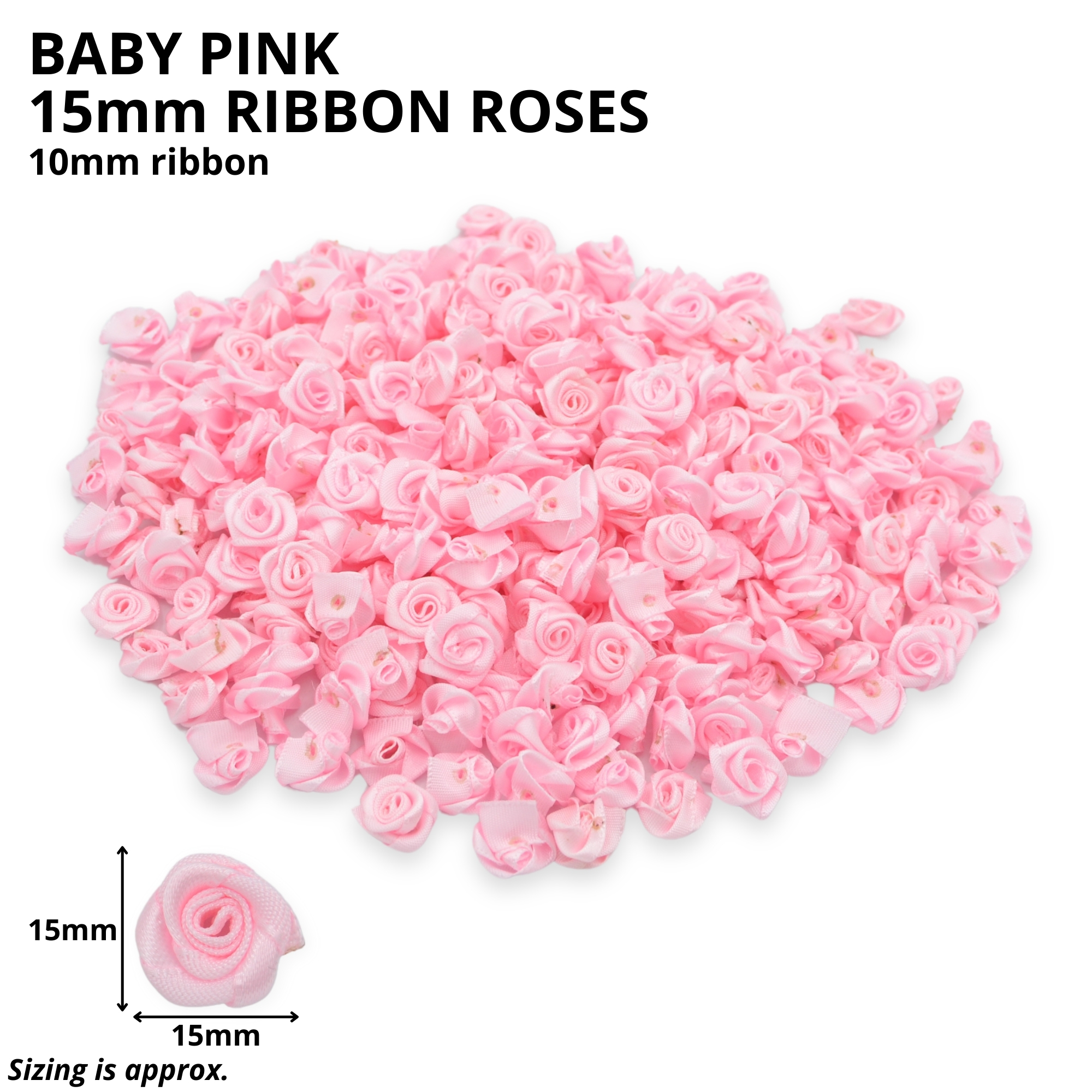 Ribbon Roses perfect for many craft projects, available in a variety of colours. Use them to decorate your cards, scrapbook pages, or even as a unique addition to your home decor.