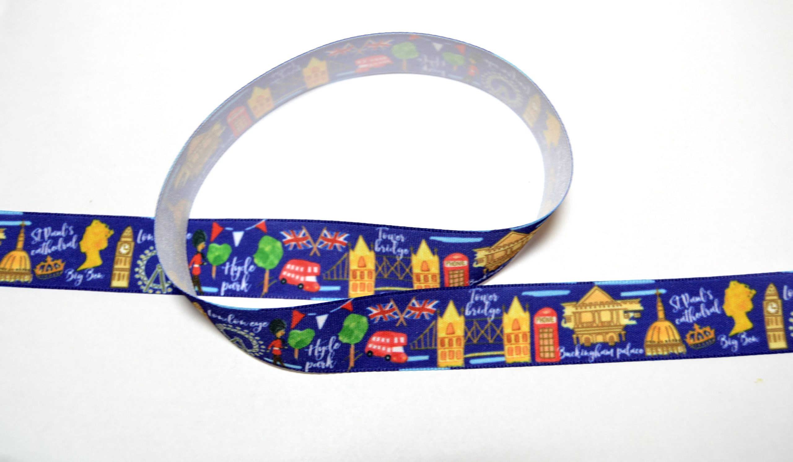 25mm Printed Single Satin Ribbon – London