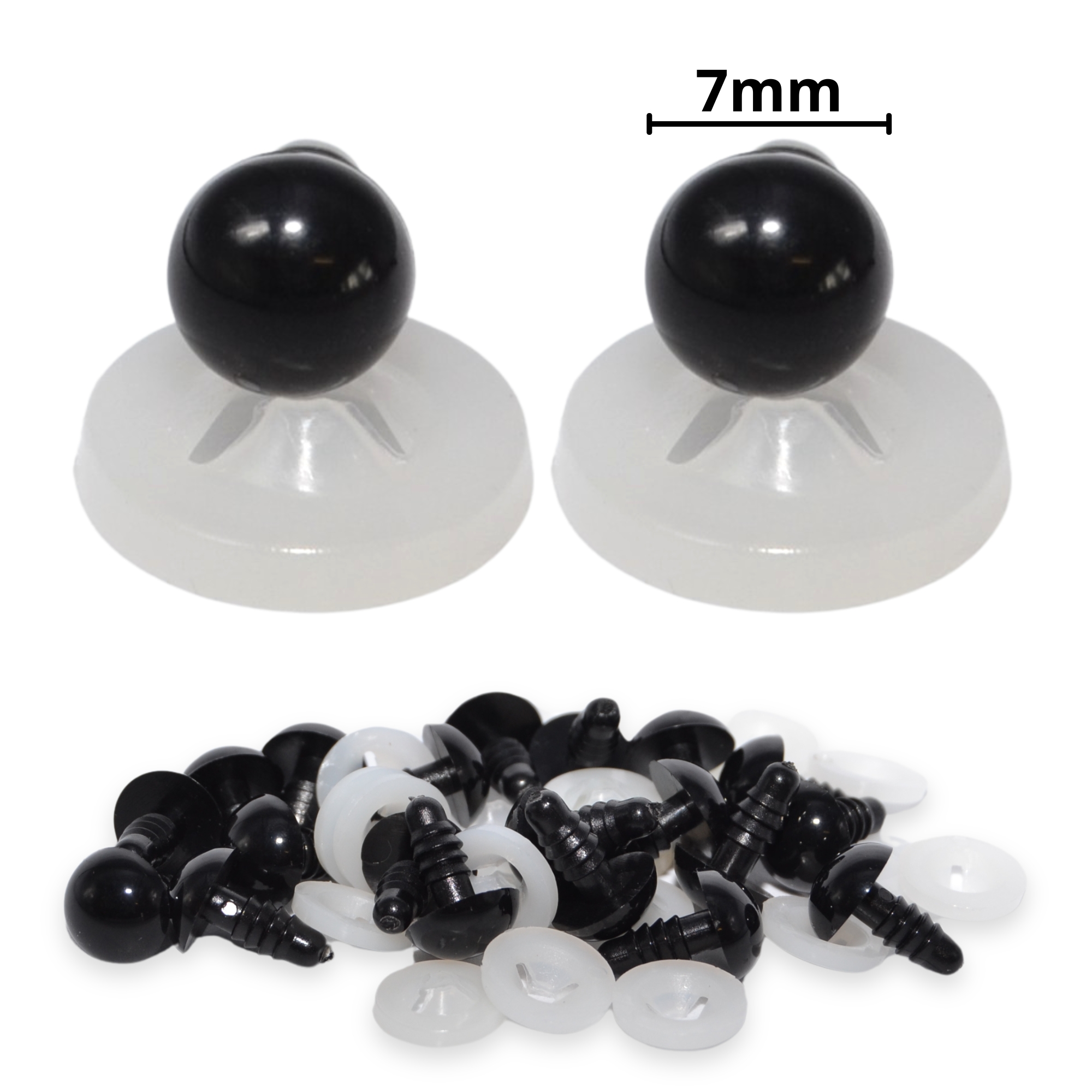 7mm Solid Black Dome Eyes with Plastic Backs