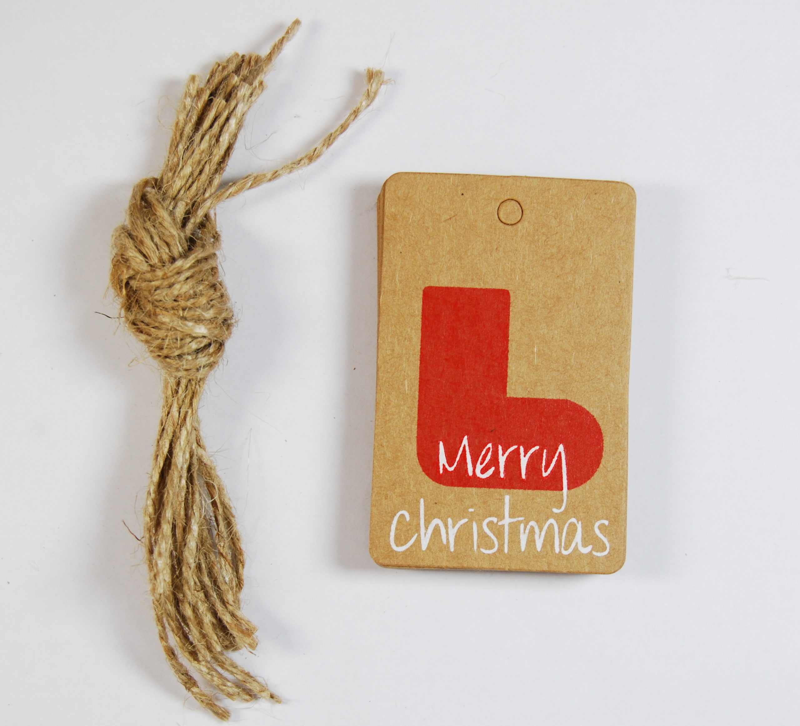 Kraft Gift Tags in Christmas (Stocking). Gift tags featuring a festive design on one side. Twine included to easily attach your personal messages to gift bags, presents, party favours and more.