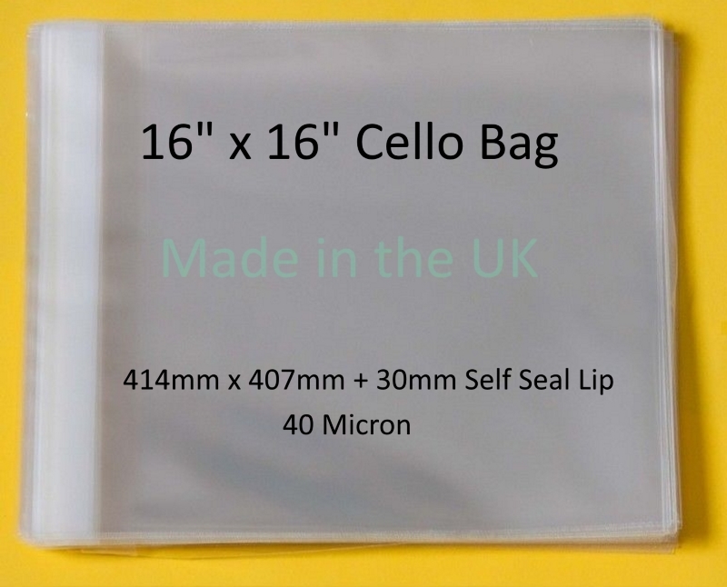 Pack of 100 – 16″ x 16″ – 414mm x 407mm + 30mm Flap – 16 x 16 – Mounted Photograph Cellophane Display Bags Self Seal 40 Micron