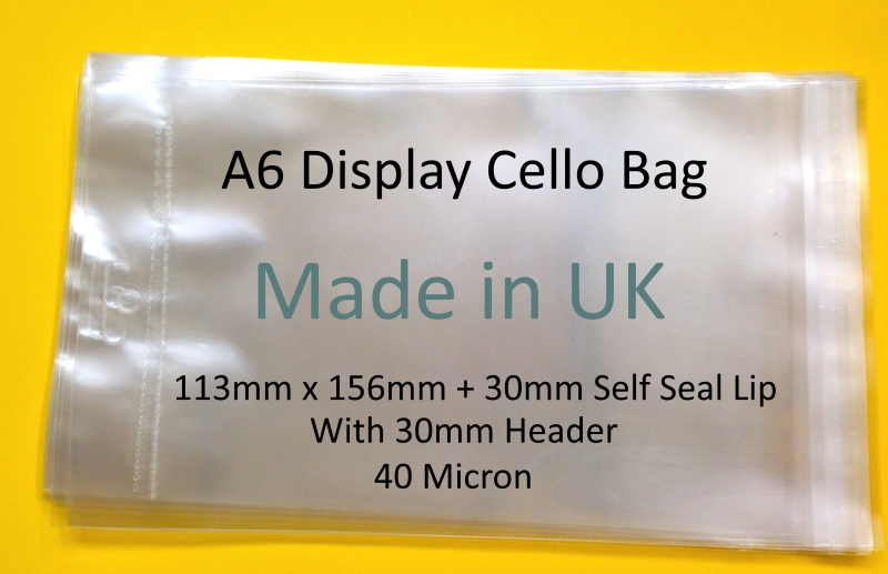 Pack of 1000 – EUROSLOT A6 – 113mm x 156mm + 30mm Header with Euroslot – 40 Micron Cellophane Clear Display Bags Self Seal – Small Cello