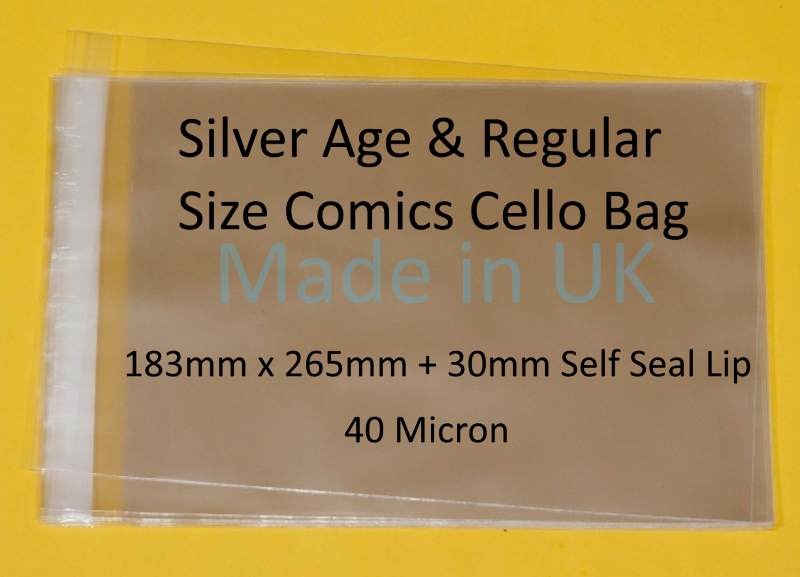 Pack of 200 – Silver Age & Regular Sized Comic Cellophane Display Bags Self Seal – Medium Cello Size 183mm x 265mm + 30mm Flap 40 Micron