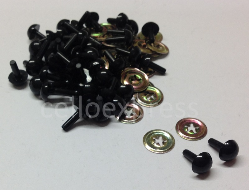 Pack of 25 Pairs – 9mm Solid Black Eyes with Metal Backs