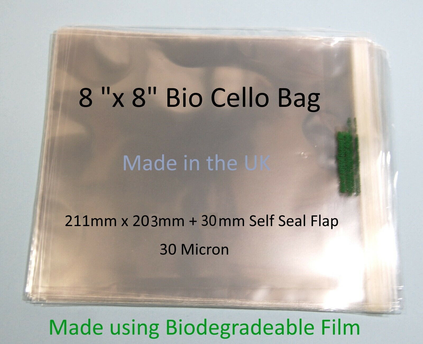 Pack of 50 – Biodegradable 8″ x 8″ – 211mm x 203mm + 30mm Self Seal Flap – Bio PLA Photomount Display Bags 30 Micron – Medium Cello