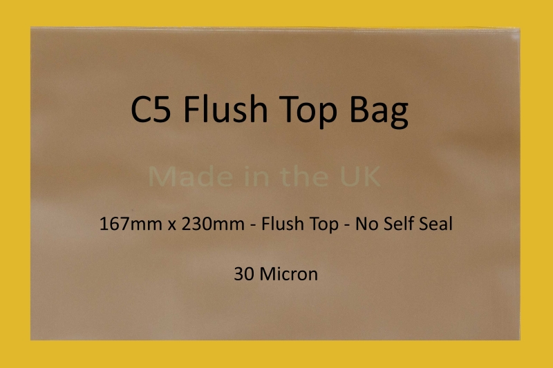 Pack of 50 – FLUSH TOP C5 – 167mm x 230mm Flush Top Cello Display Bags