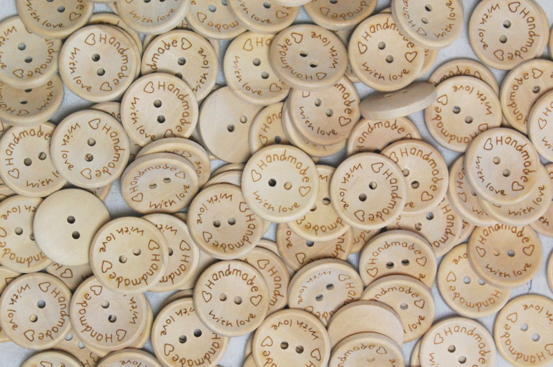 Printed Natural Wooden Buttons – 20mm Handmade with Love – Hearts