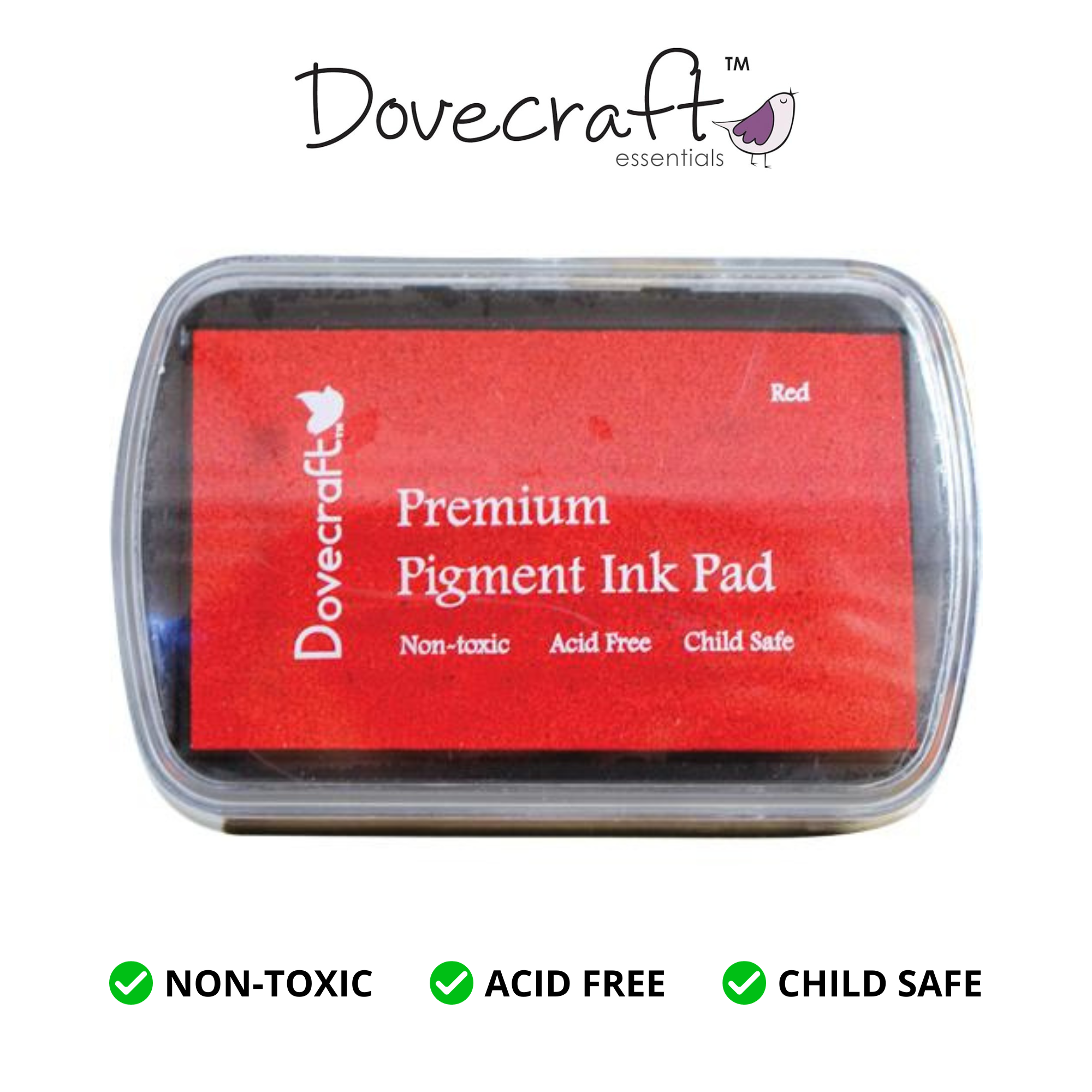 Dovecraft Premium Pigment Ink Pads in Red. Fast drying premium solid colour ink pads, suitable for use on any type of paper and card. Can be used with embossing powders and heat tools.