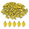 Yellow with Green Leaves Satin Ribbon Roses. Made with satin ribbon these small embellishments have a beautiful rose centred on top of 2 ribbon leaves, available in a great variety of gorgeous colours. Add a delicate touch of elegance to special handmade cards, scrapbooking pages and much more.