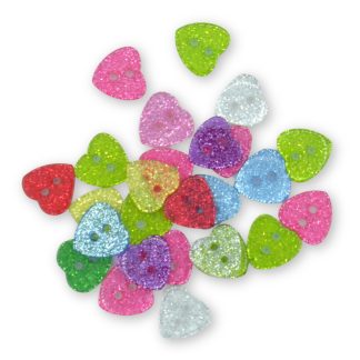 Add a touch of glittery sparkle with these 14mm butterfly, heart and star shaped buttons. Choose from a variety of glitter colours, shapes and sizes these are perfect for all your crafting needs.