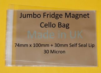 Pack of 1,000 – Jumbo Fridge Magnets Cello Display Bags – 74mm x 100mm + 30mm Self Seal Flap 40 Micron