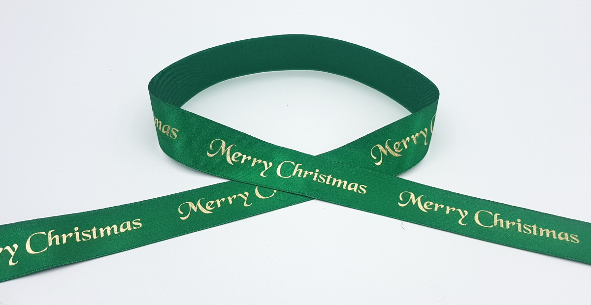 10mm Printed Single Satin Ribbon – Christmas Hunter