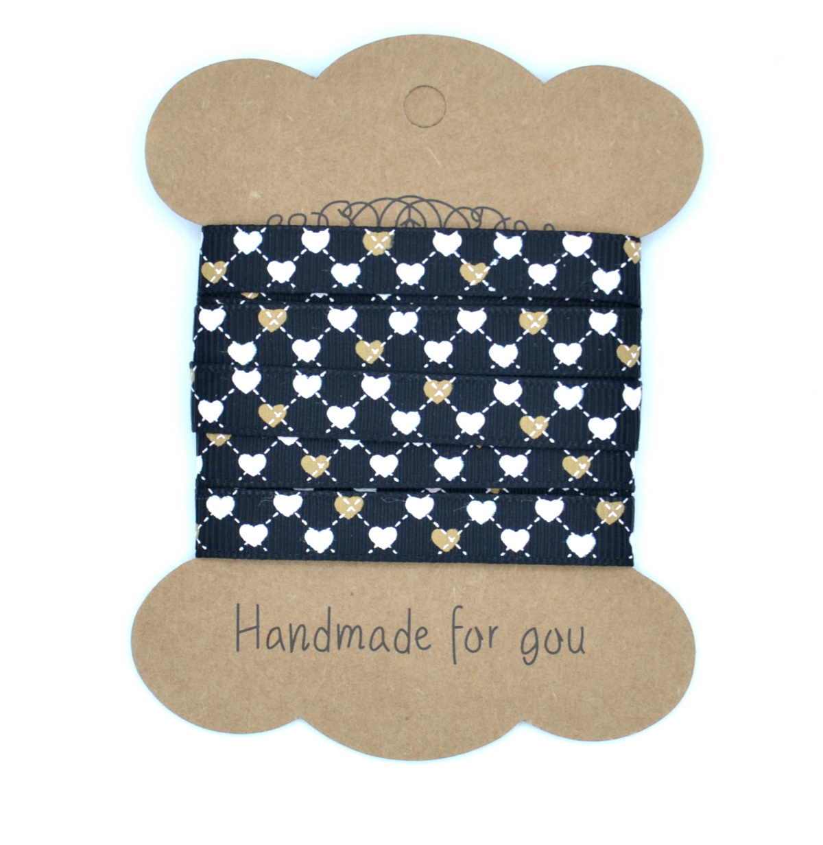 10mm or 15mm x 1.5m Grosgrain Ribbon – Black with Hearts