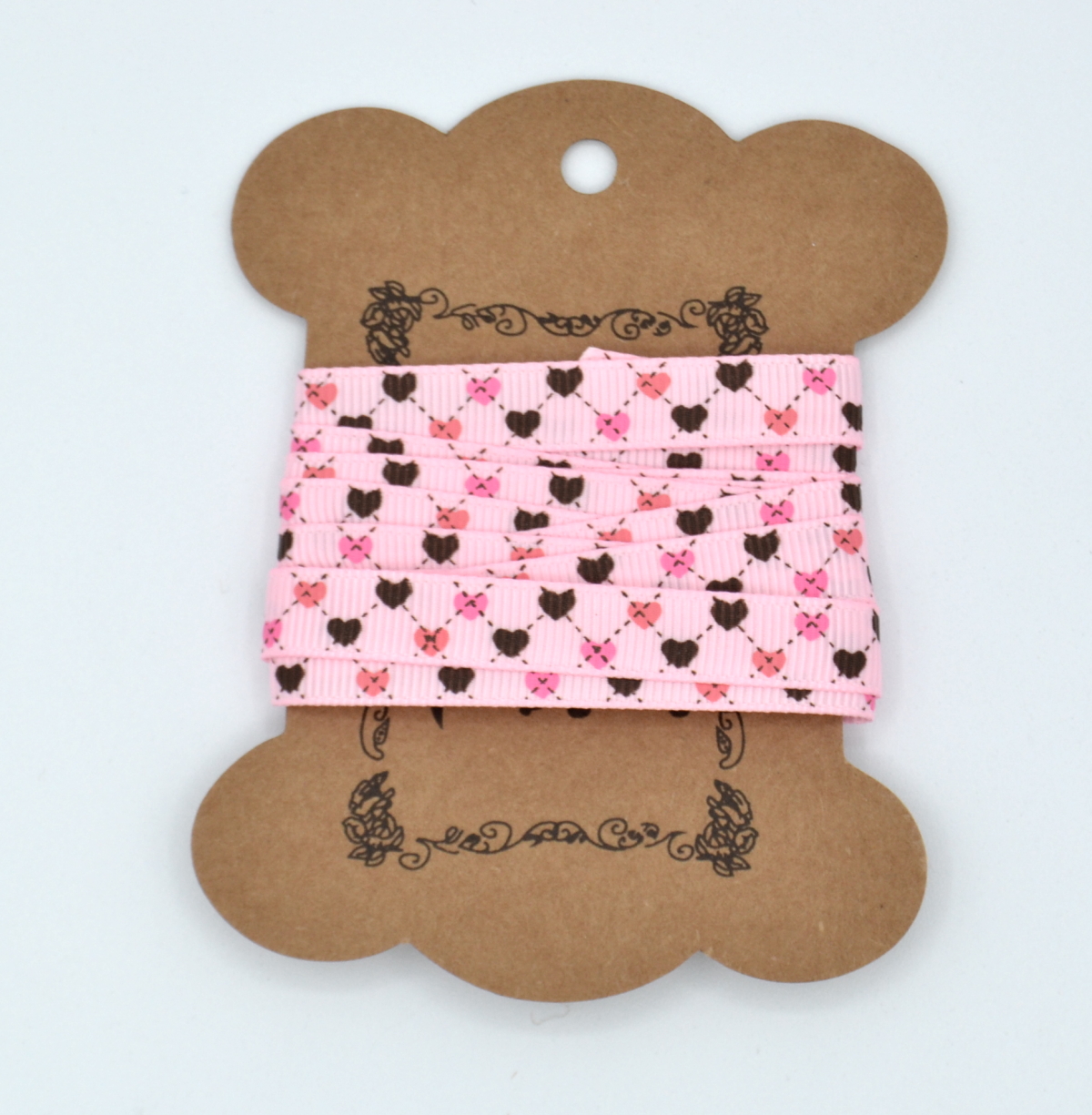 10mm or 15mm x 1.5m Grosgrain Ribbon – Pink with Hearts