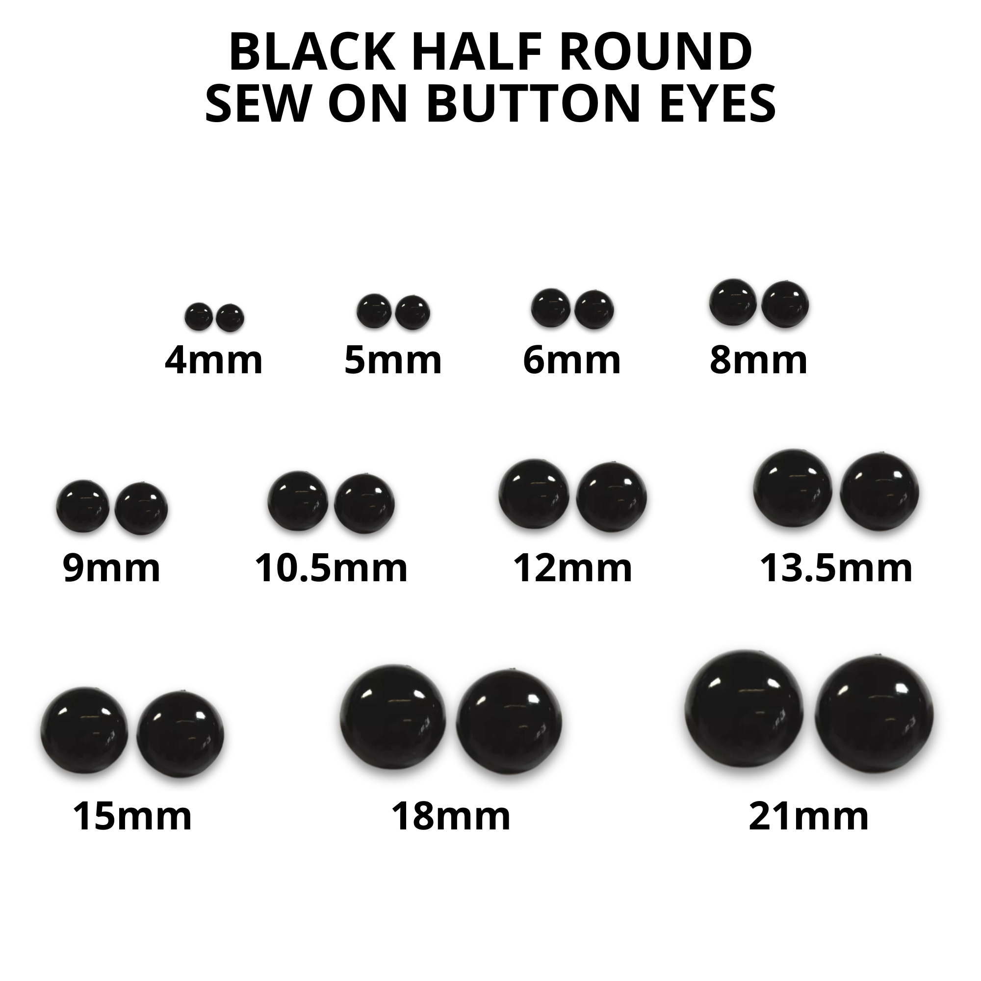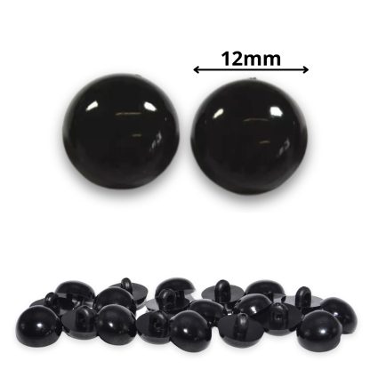 Sew On – 12mm Solid Black Half Round Button Eyes for Teddy Bear/Animal Soft Toy Making