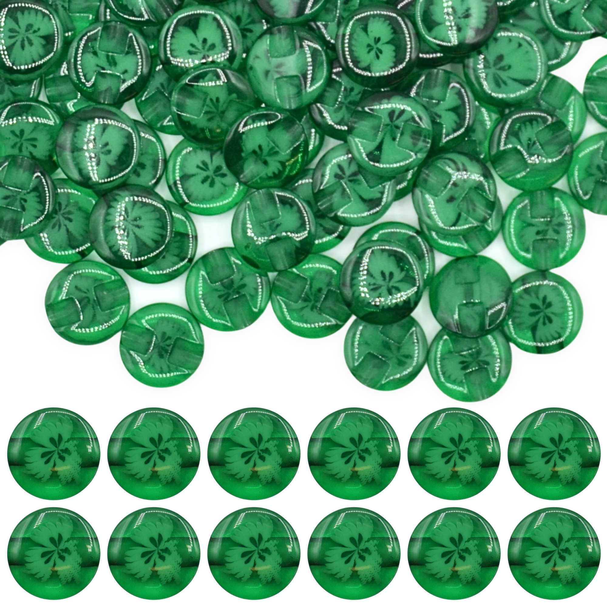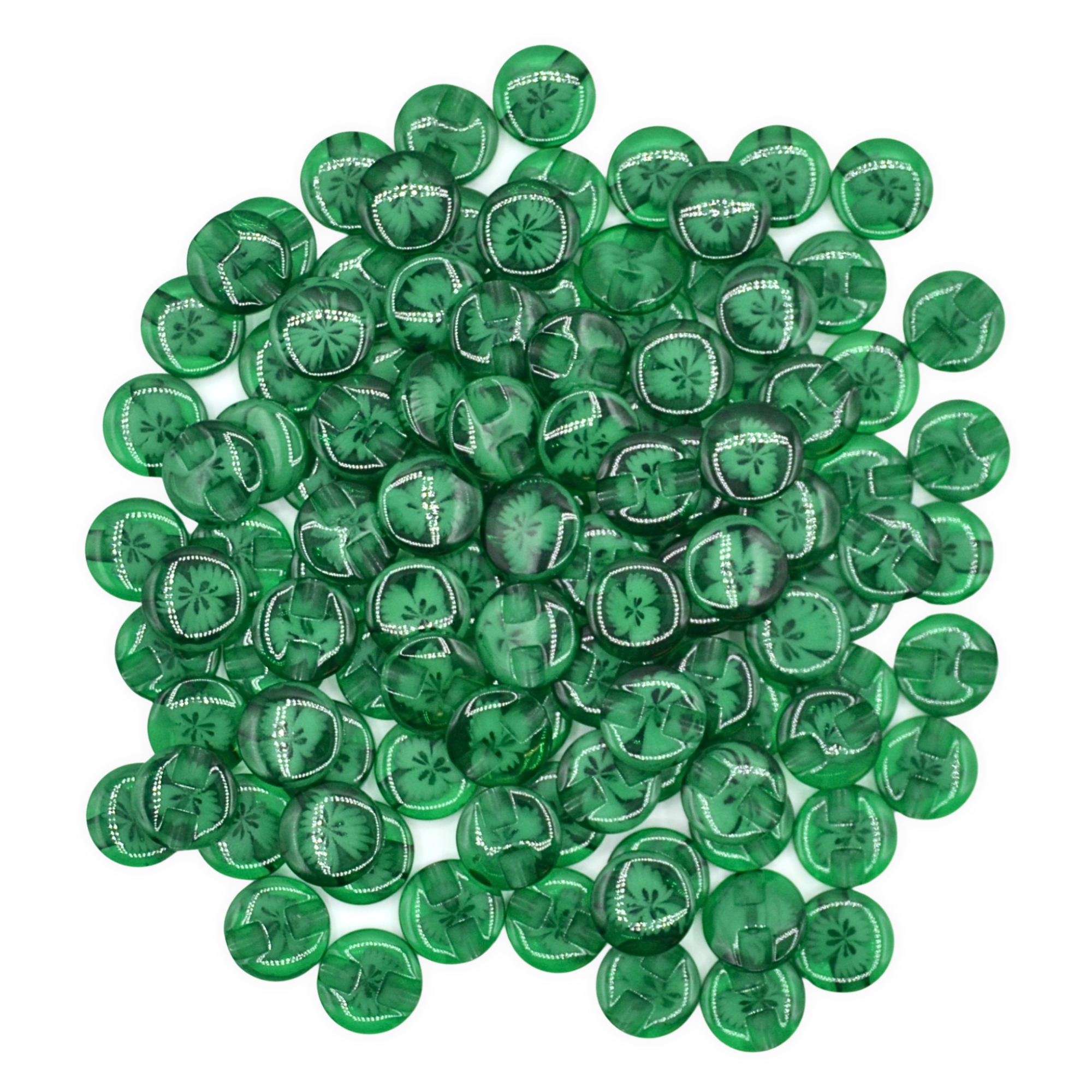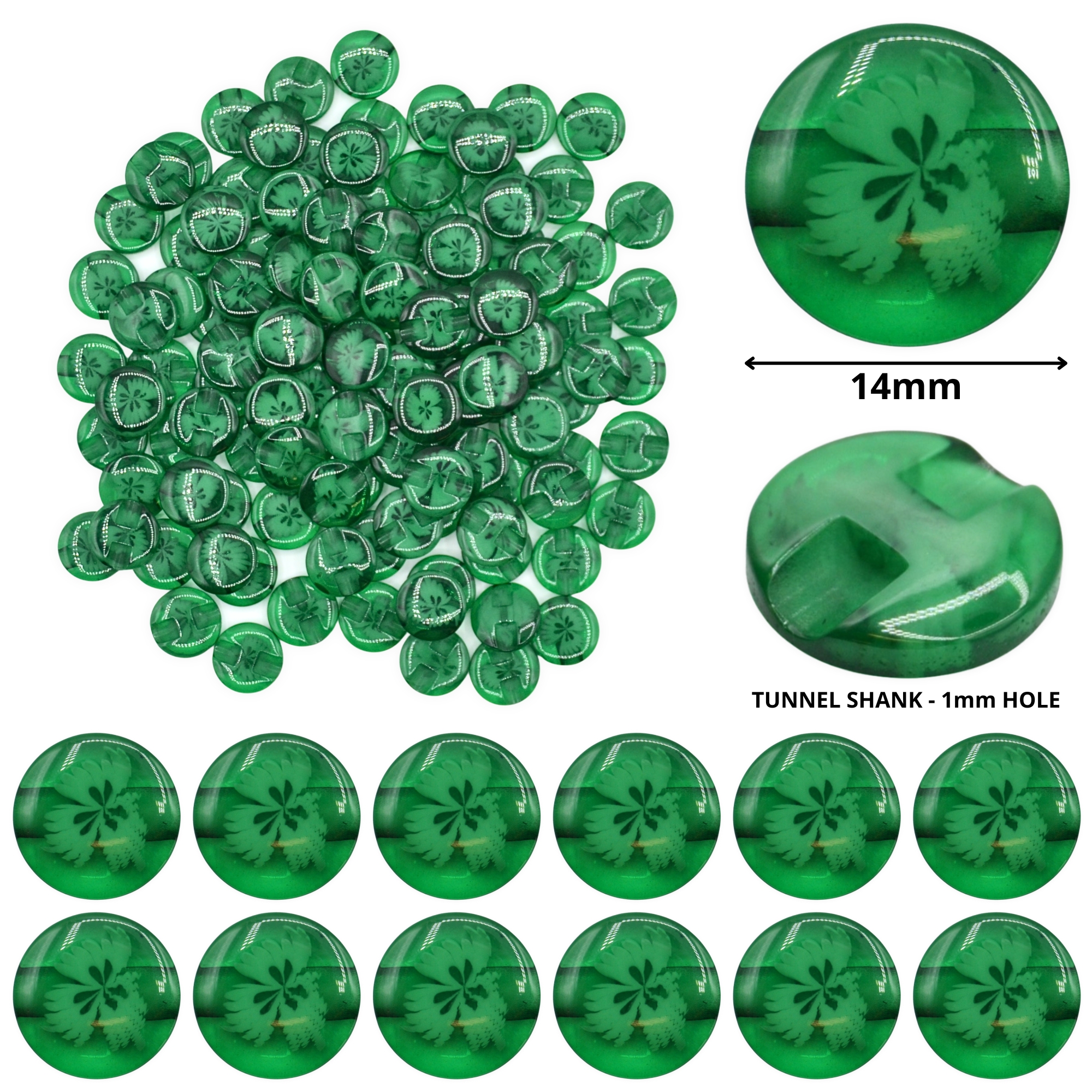 Made from moulded resin with a smooth glossy surface giving a glass-like look while remaining durable and lightweight yet sturdy, with embedded floral detail sealed inside. Featuring a tunnel shank design with 1mm hole to keep all stitching hidden underneath, leaving the front of the button clear to showcase the beautiful floral design. Since the stitching doesn’t rub directly against the button’s edge, shank buttons often last longer and are less likely to come loose.