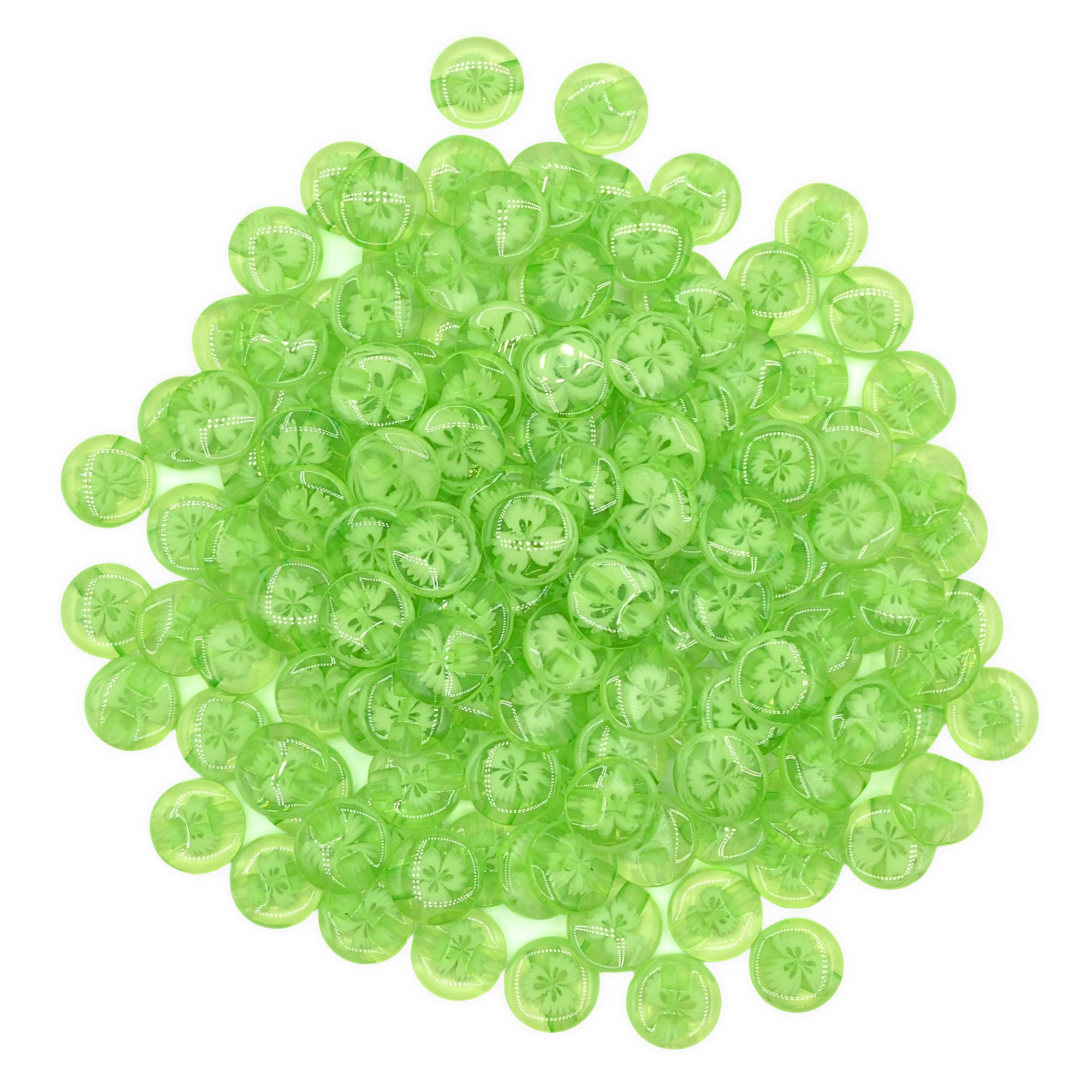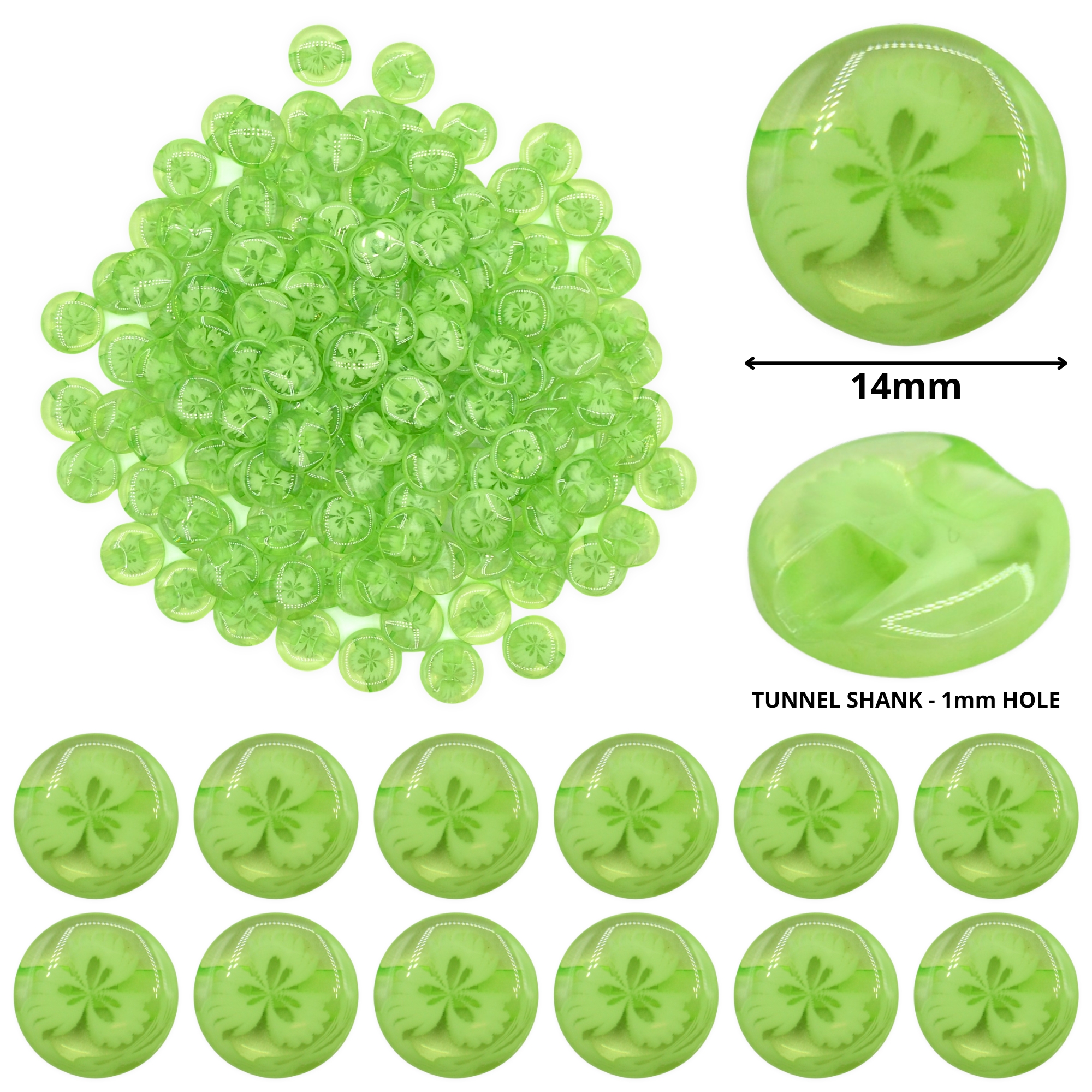 Made from moulded resin with a smooth glossy surface giving a glass-like look while remaining durable and lightweight yet sturdy, with embedded floral detail sealed inside. Featuring a tunnel shank design with 1mm hole to keep all stitching hidden underneath, leaving the front of the button clear to showcase the beautiful floral design. Since the stitching doesn’t rub directly against the button’s edge, shank buttons often last longer and are less likely to come loose.