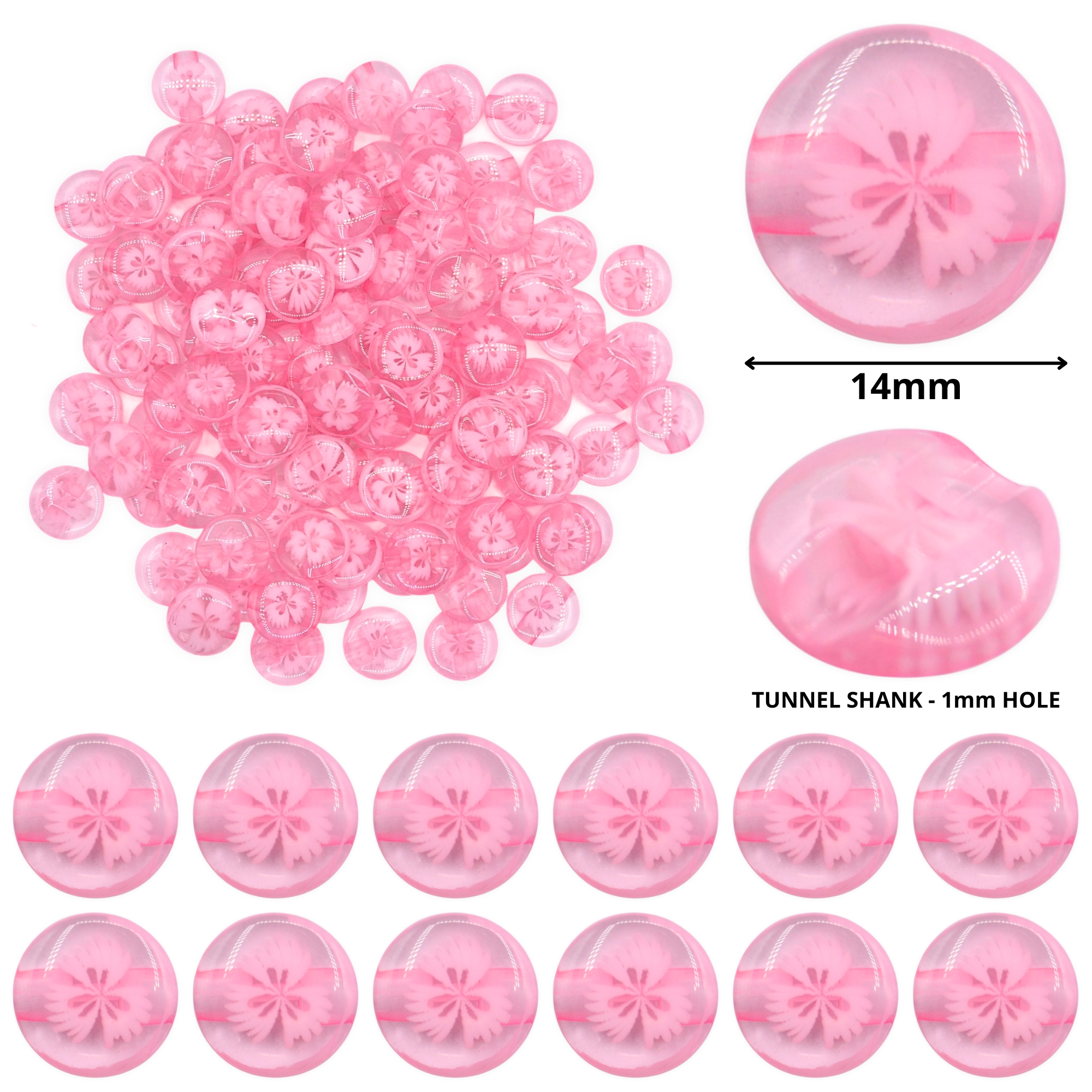 Made from moulded resin with a smooth glossy surface giving a glass-like look while remaining durable and lightweight yet sturdy, with embedded floral detail sealed inside. Featuring a tunnel shank design with 1mm hole to keep all stitching hidden underneath, leaving the front of the button clear to showcase the beautiful floral design. Since the stitching doesn’t rub directly against the button’s edge, shank buttons often last longer and are less likely to come loose.