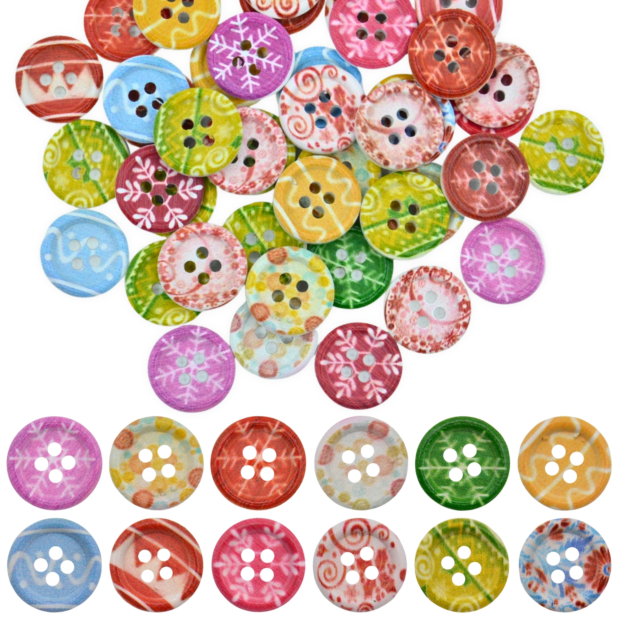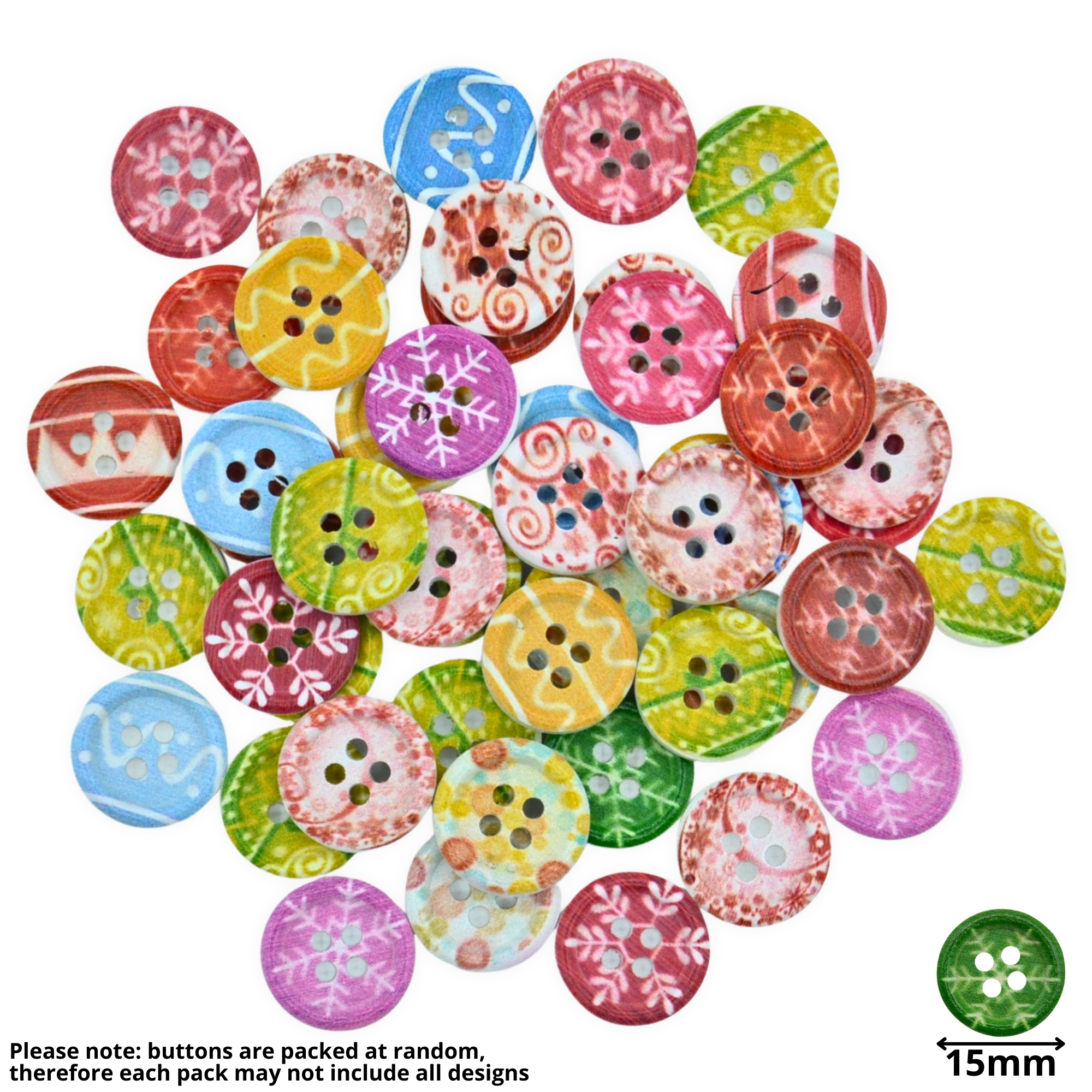 15mm Christmas 34 Bright Patterns Mix – Printed Wooden Round Buttons