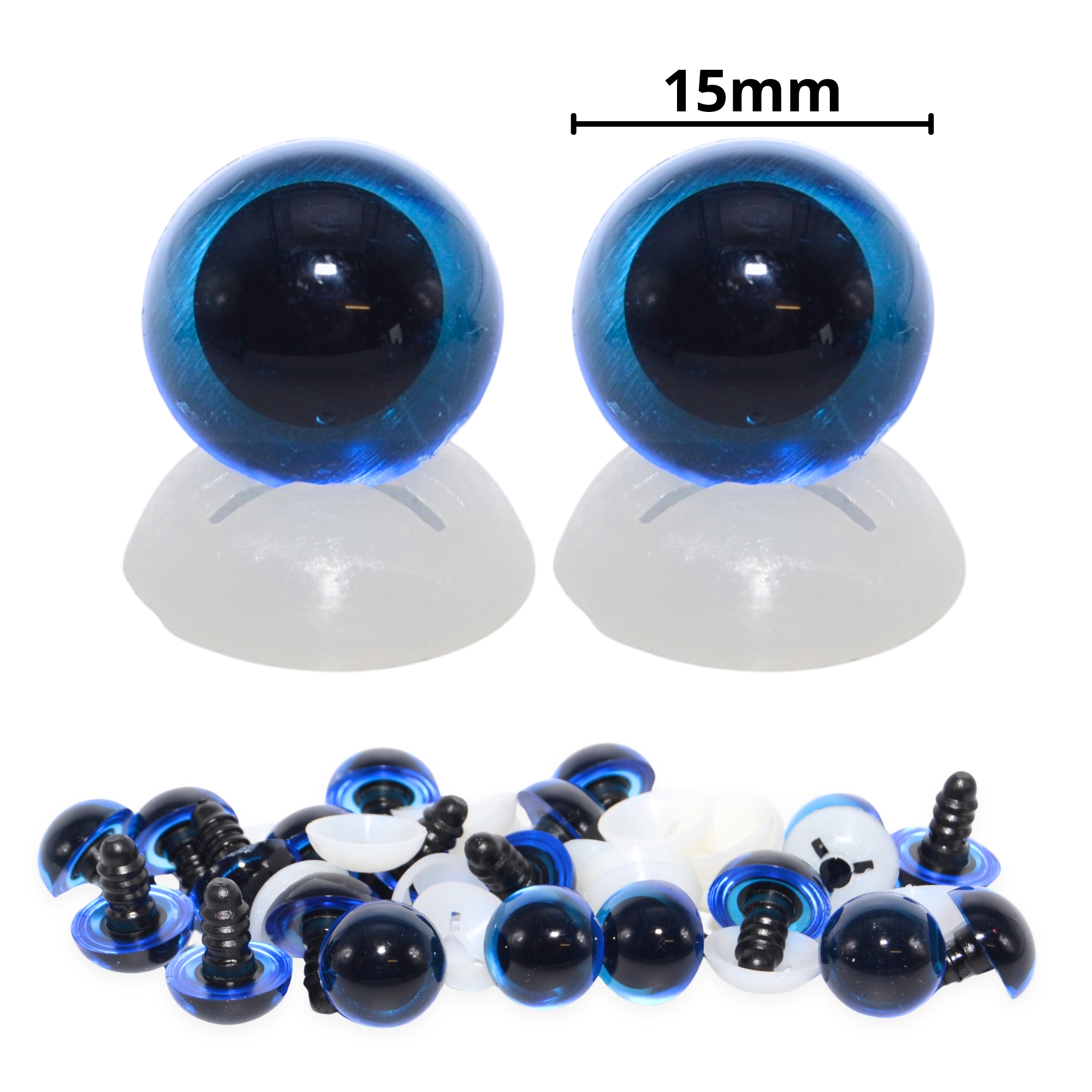 15mm Transparent Blue Eyes with Plastic Backs