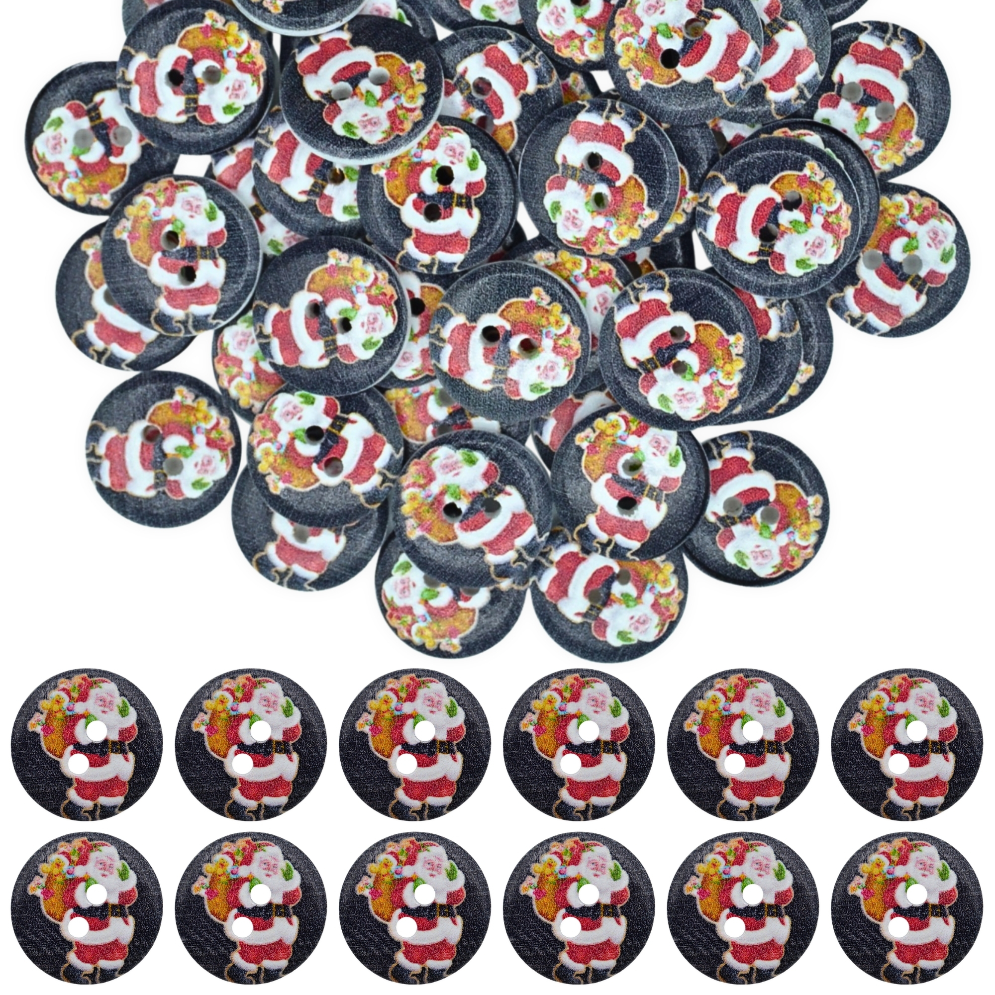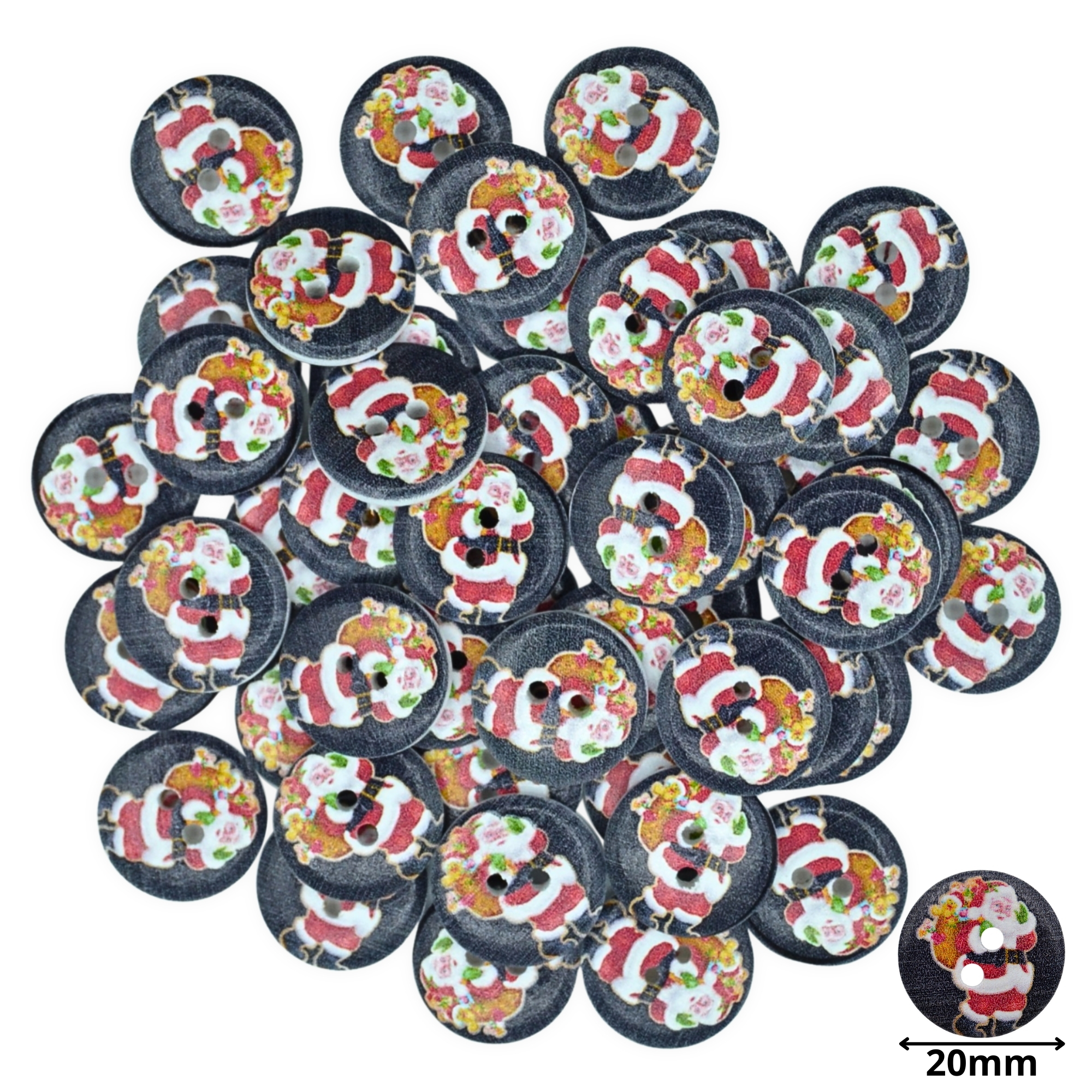 20mm Christmas 17 Santa / Father Christmas – Printed Wooden Round Buttons