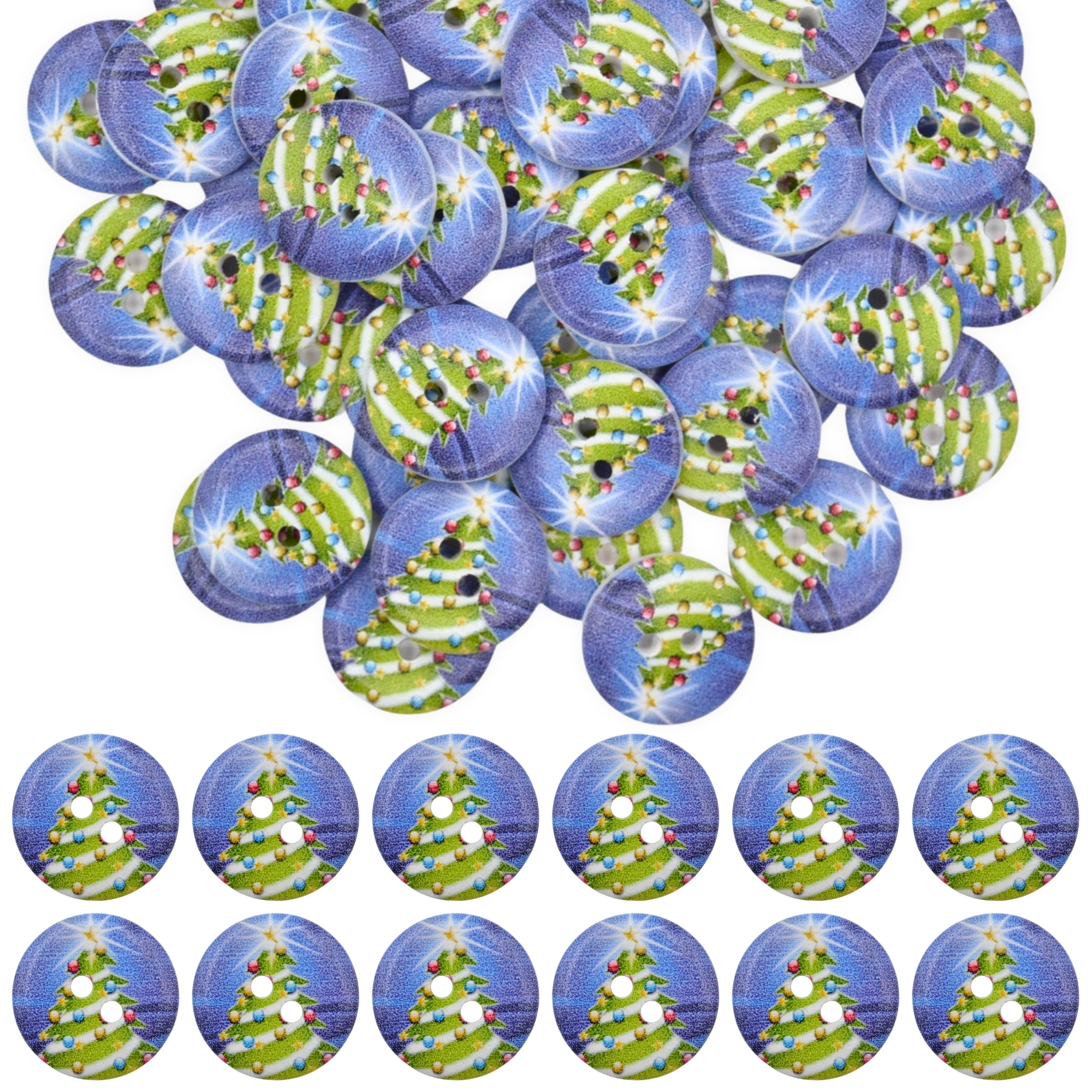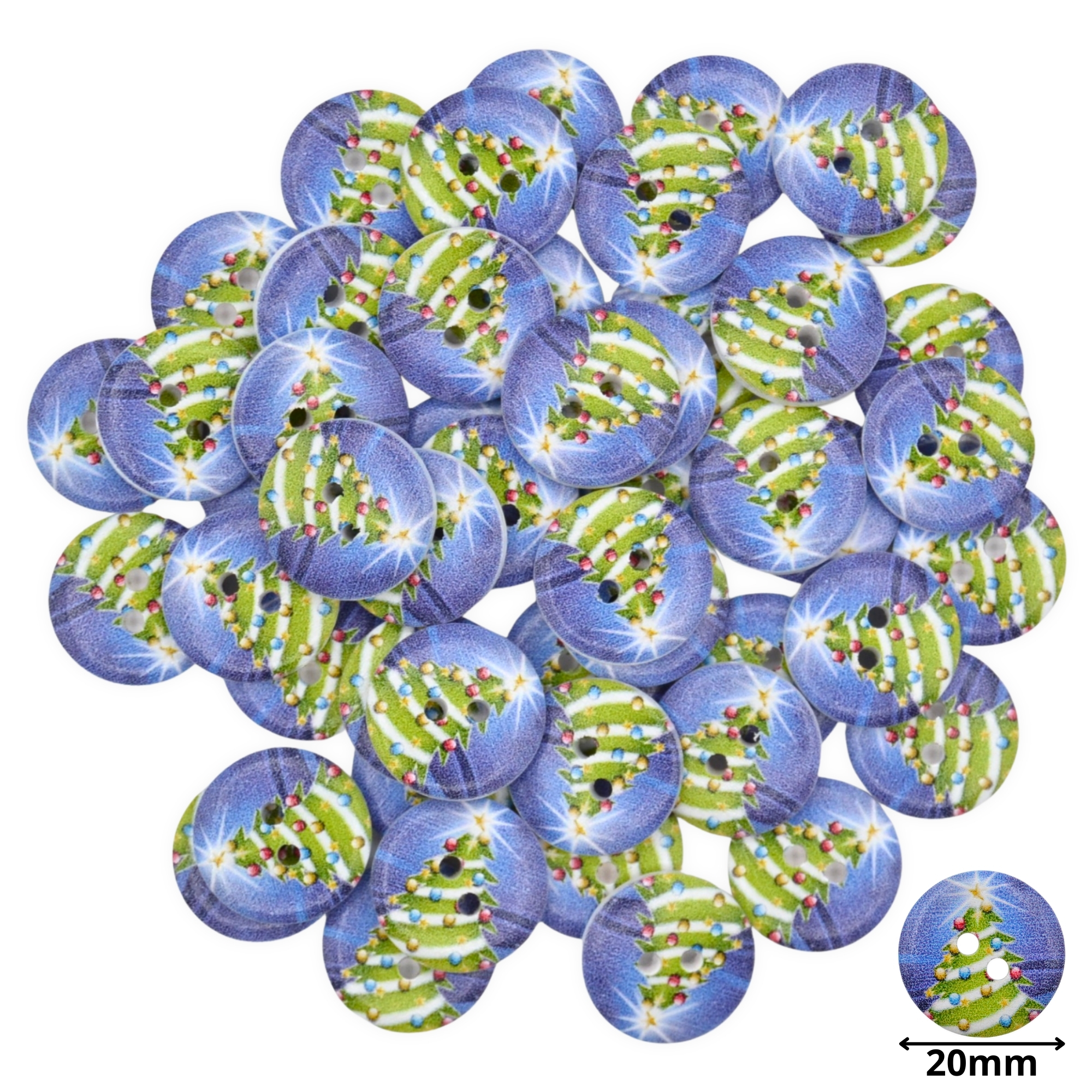 20mm Christmas 2 Christmas Tree – Printed Wooden Round Buttons