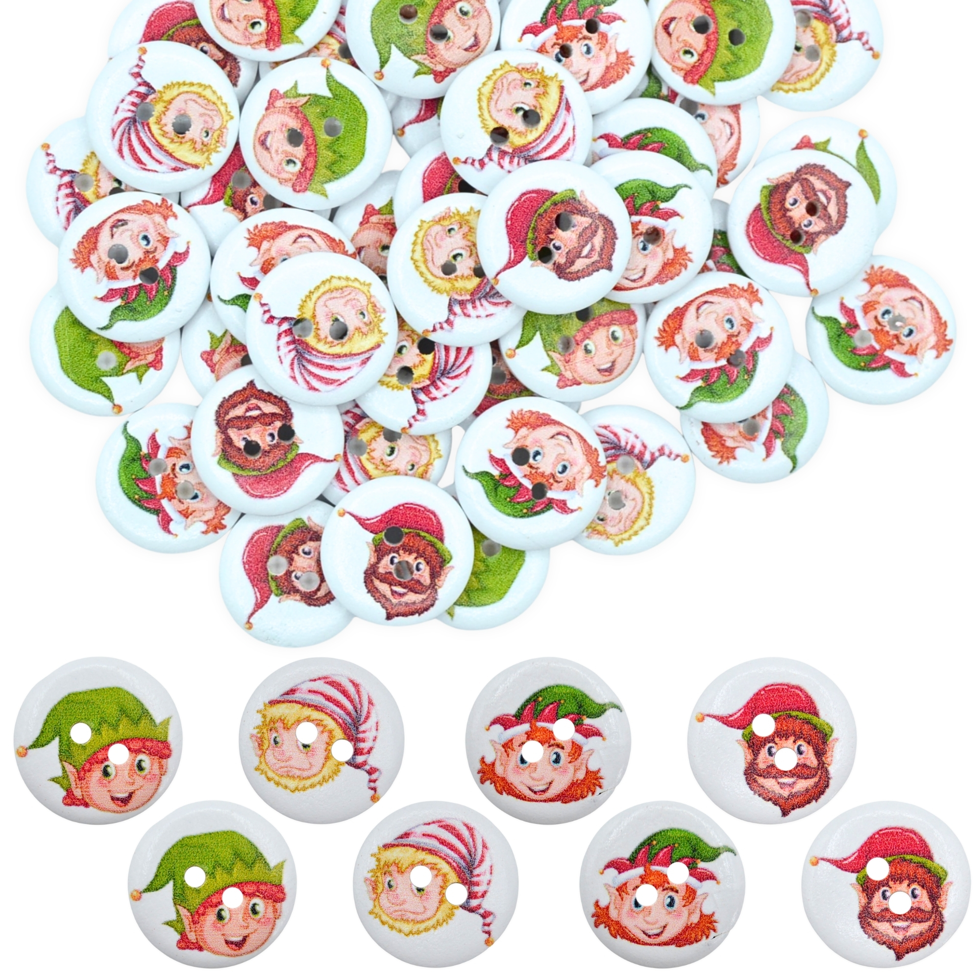 20mm Christmas 26 Elves Mix – Printed Wooden Round Buttons