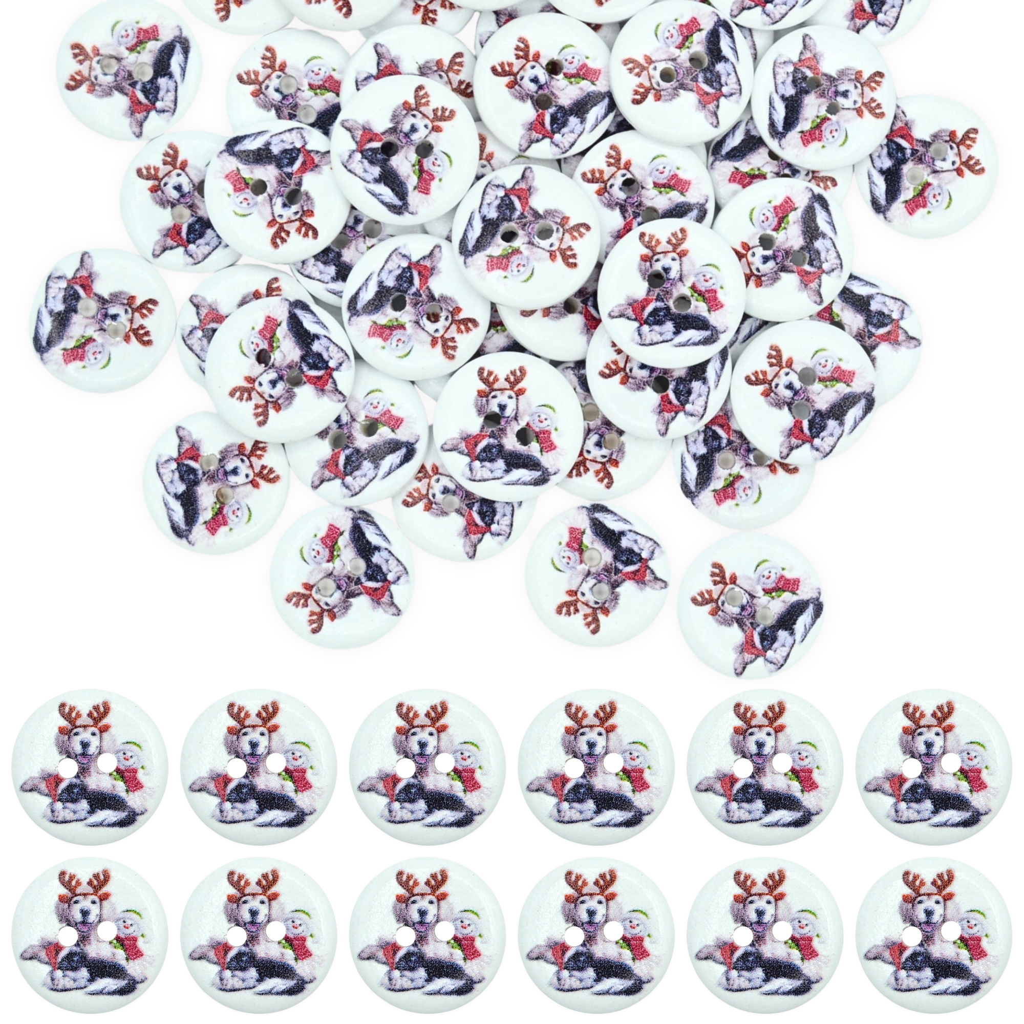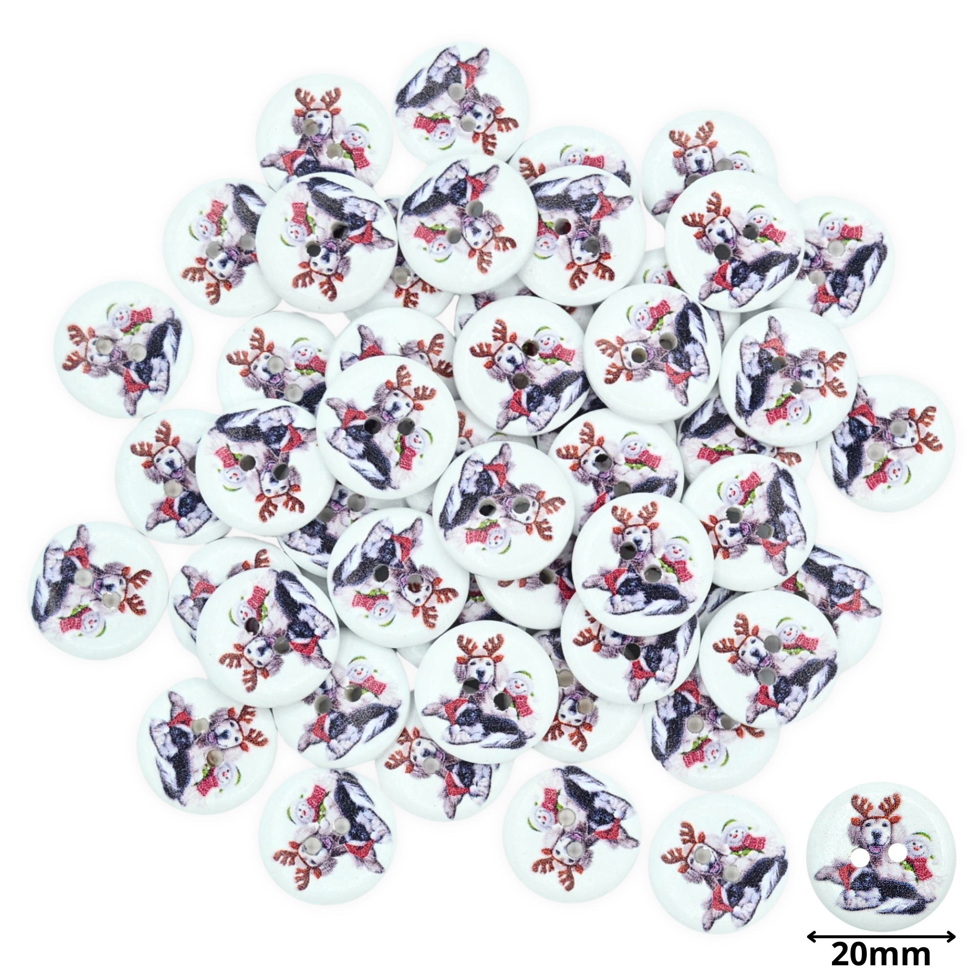 20mm Christmas 37 Christmas Pets – Printed Wooden Round Buttons