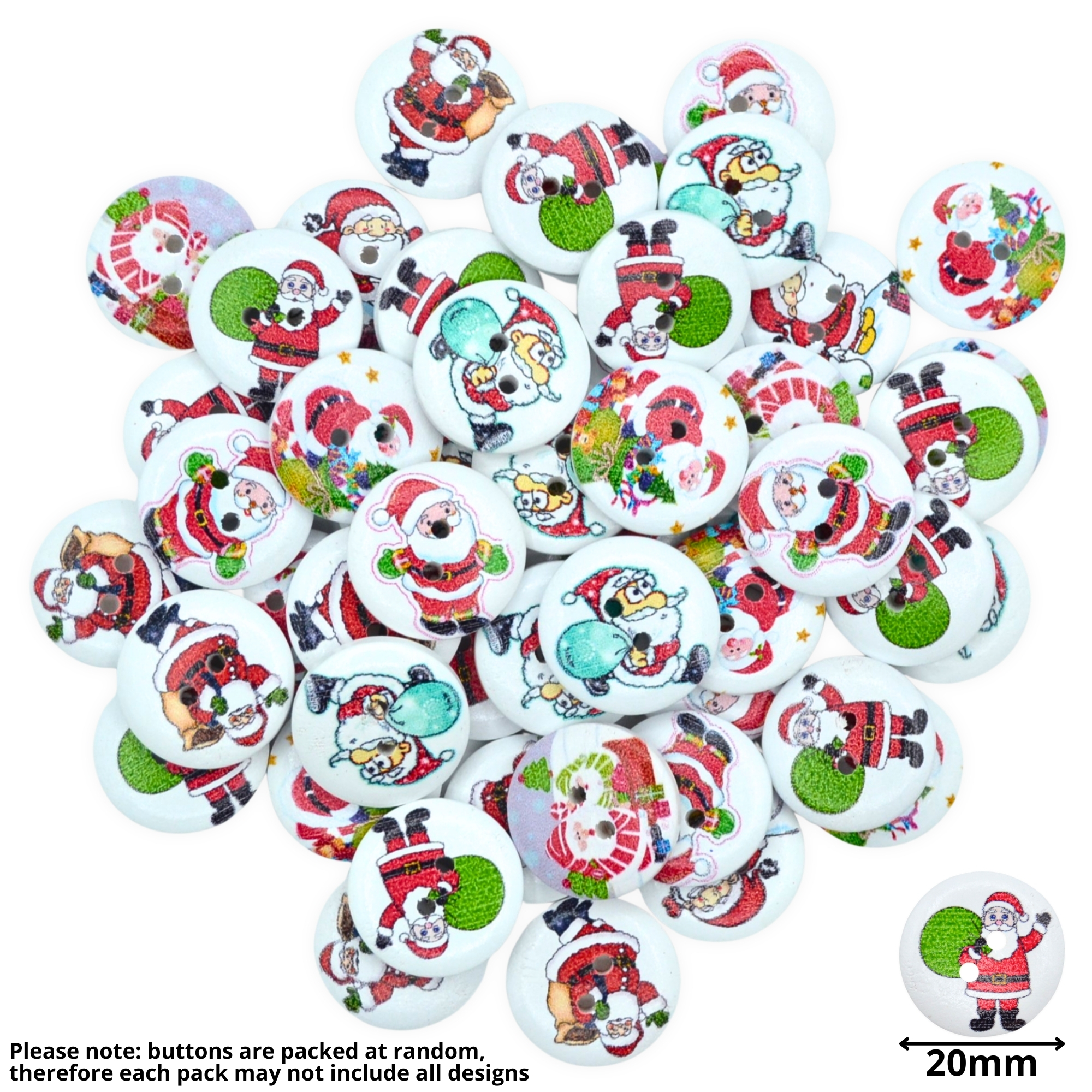 20mm Christmas 28 Santa Mix – Printed Wooden Round Buttons