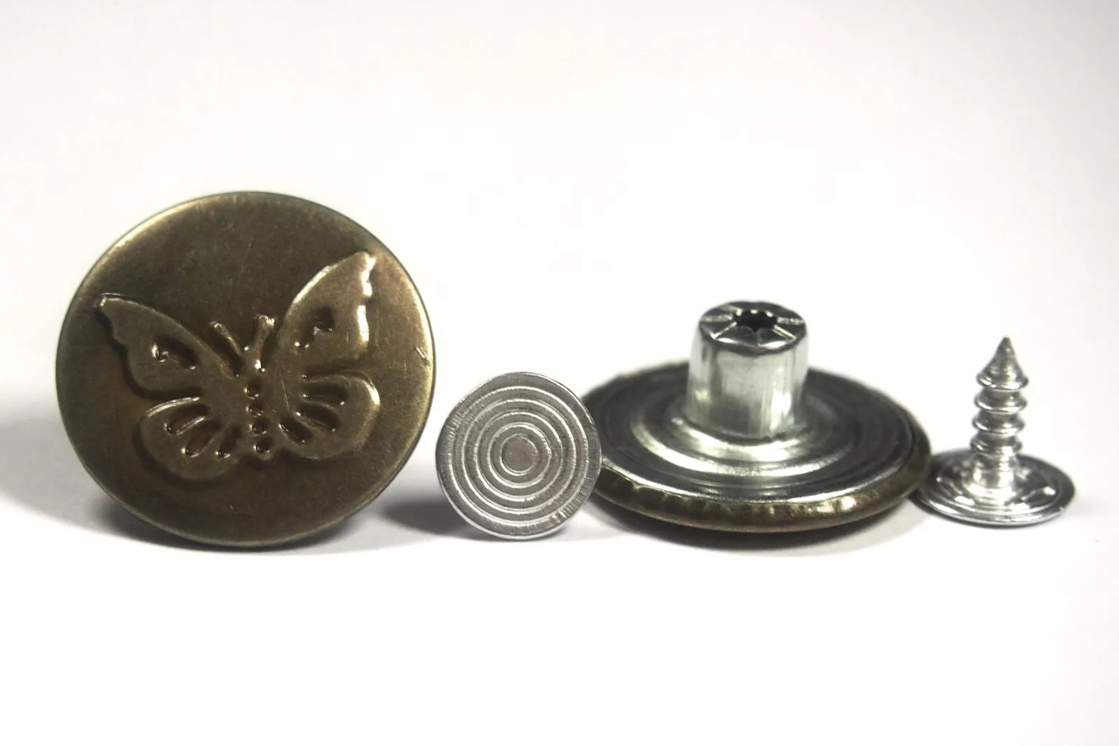 20mm Full Butterfly Bronze Jean Buttons – Hammer On Studs & Pins