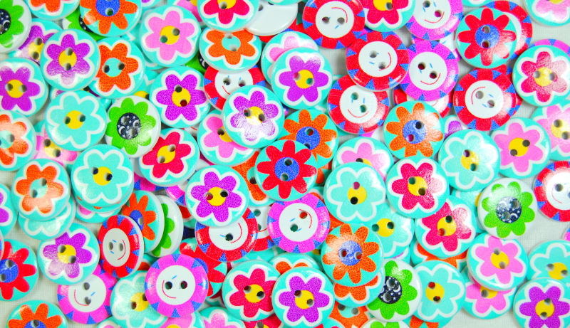 20mm Mixed Daisies 1 – Cute & Patterned Wooden Buttons