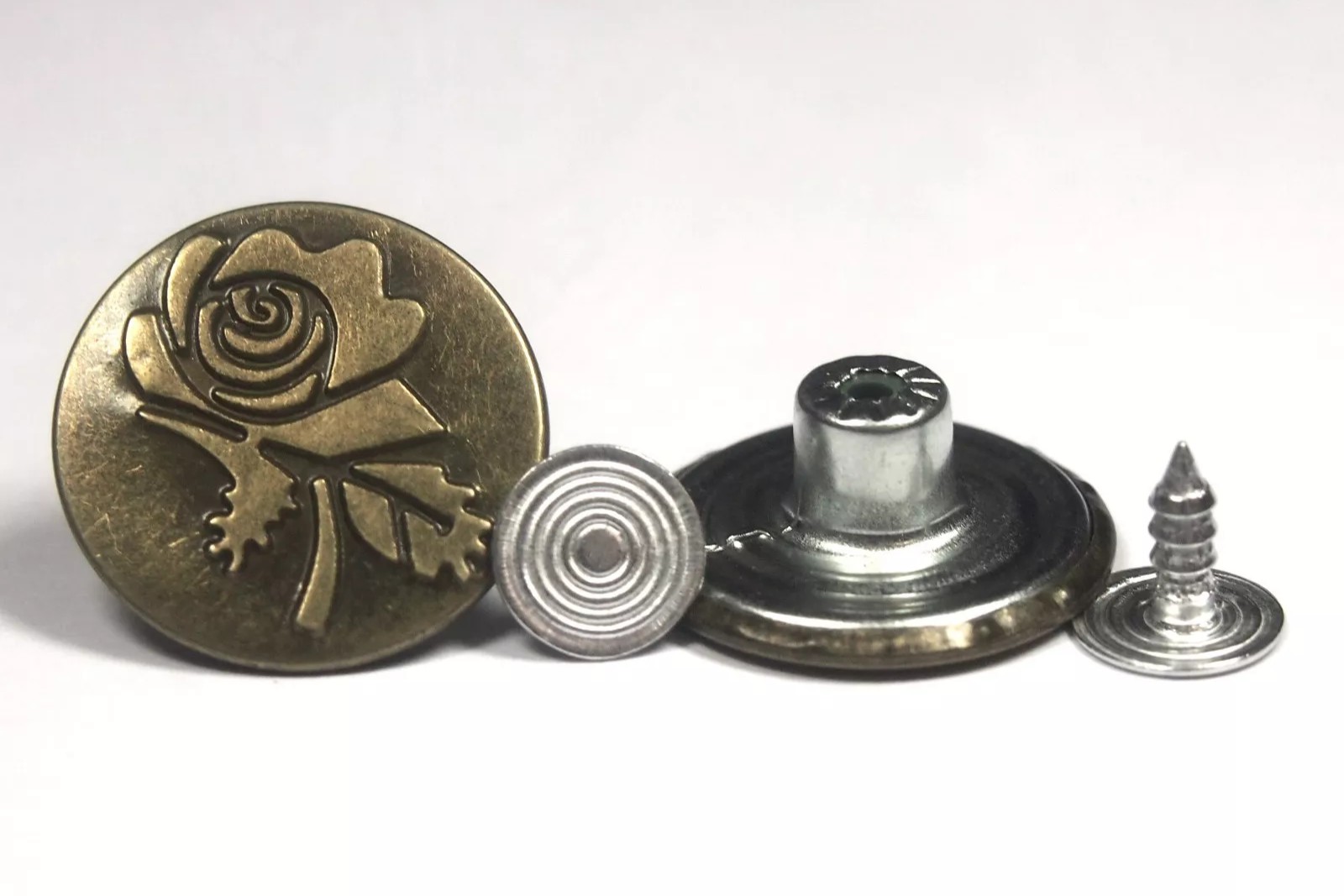 20mm Rugby Rose Bronze Jean Buttons – Hammer On Studs & Pins