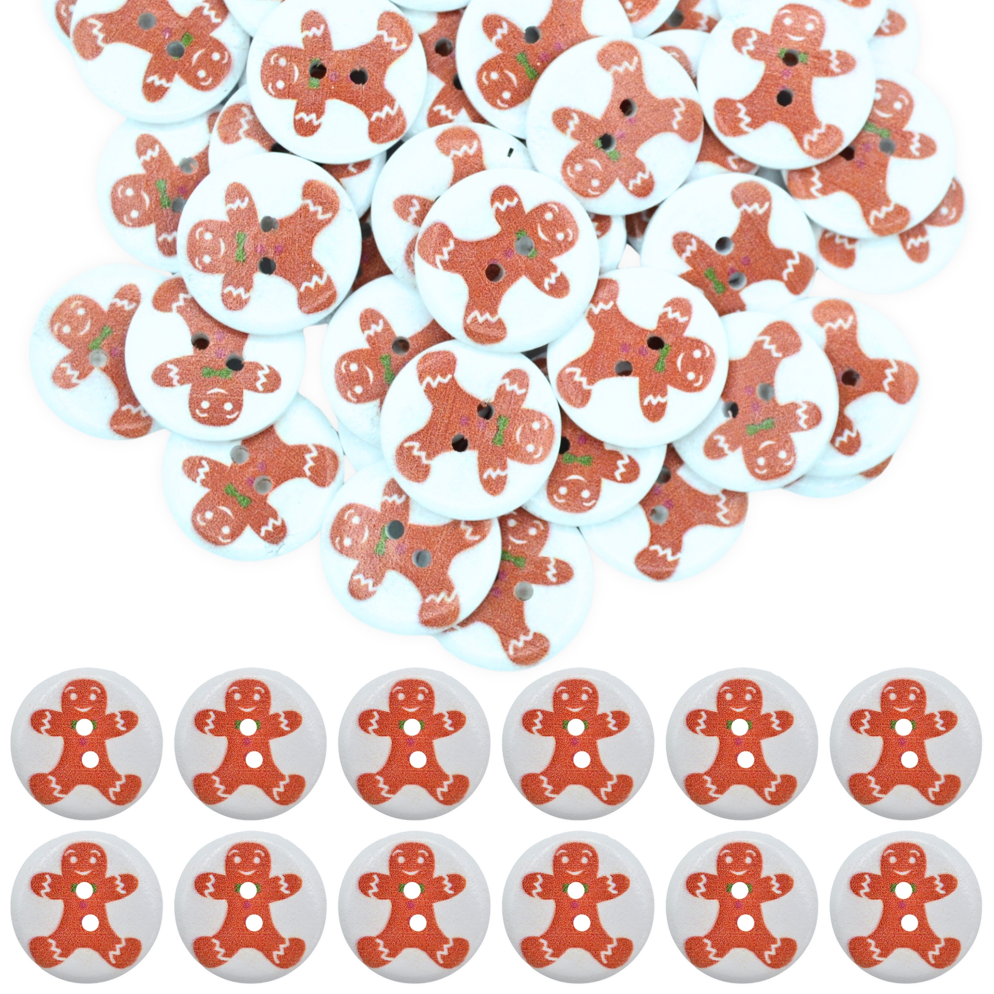25mm Christmas 35 Gingerbread Man – Printed Wooden Round Buttons