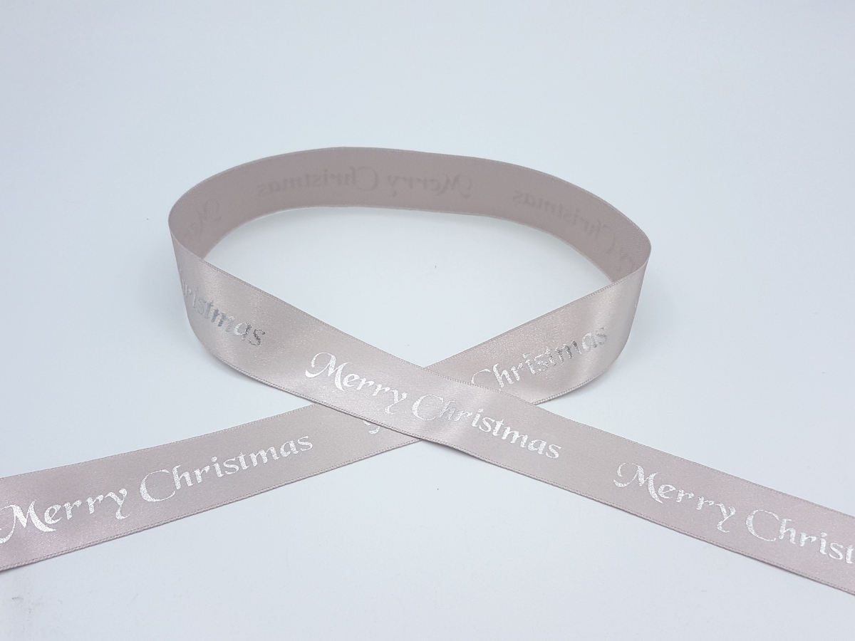 25mm Printed Single Satin Ribbon – Christmas Silver