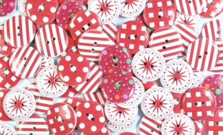 Wooden Buttons Printed (Red & White Patterned – 25mm)