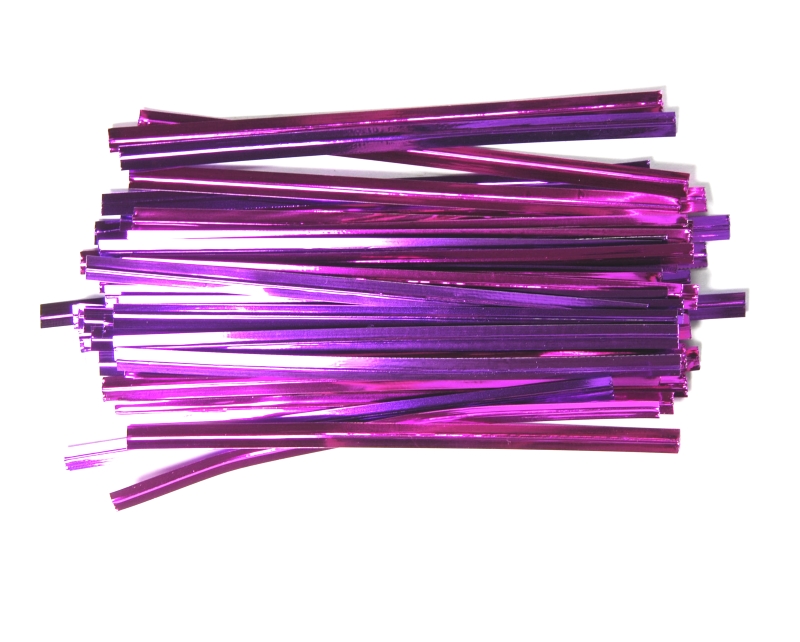 3″/8cm Twist Ties in Pink & Purple Mix. Metallica plastic twist ties with wire core to bend and twist tightly keeping bags closed. Perfect for closing candy cone cellophane bags, confectionary bags, sandwich bags, cake pop bags and lots more.