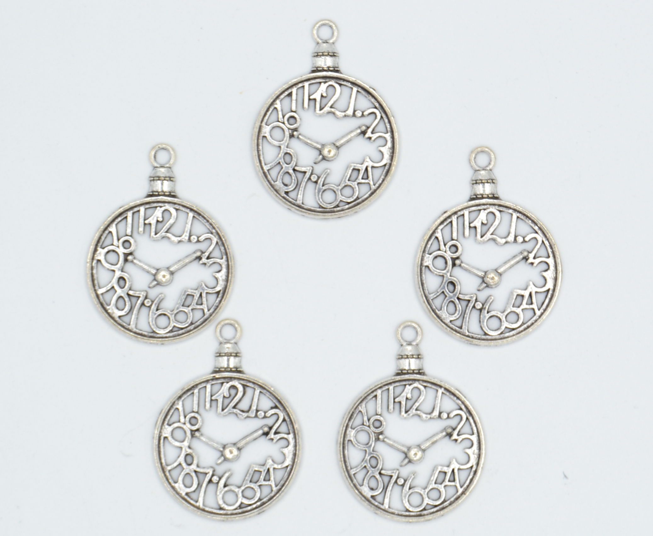 36mm x 36mm x 2mm Antique Silver Open Clockface Steampunk Discs
