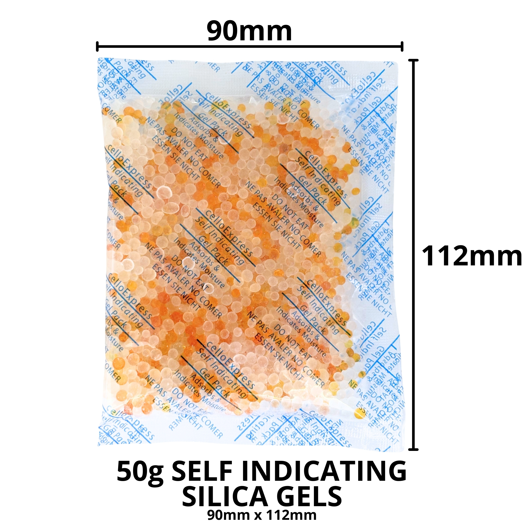 50 Gram Self Indicating Silica Gel Desiccant Sachets 90mm x 112mm approx.