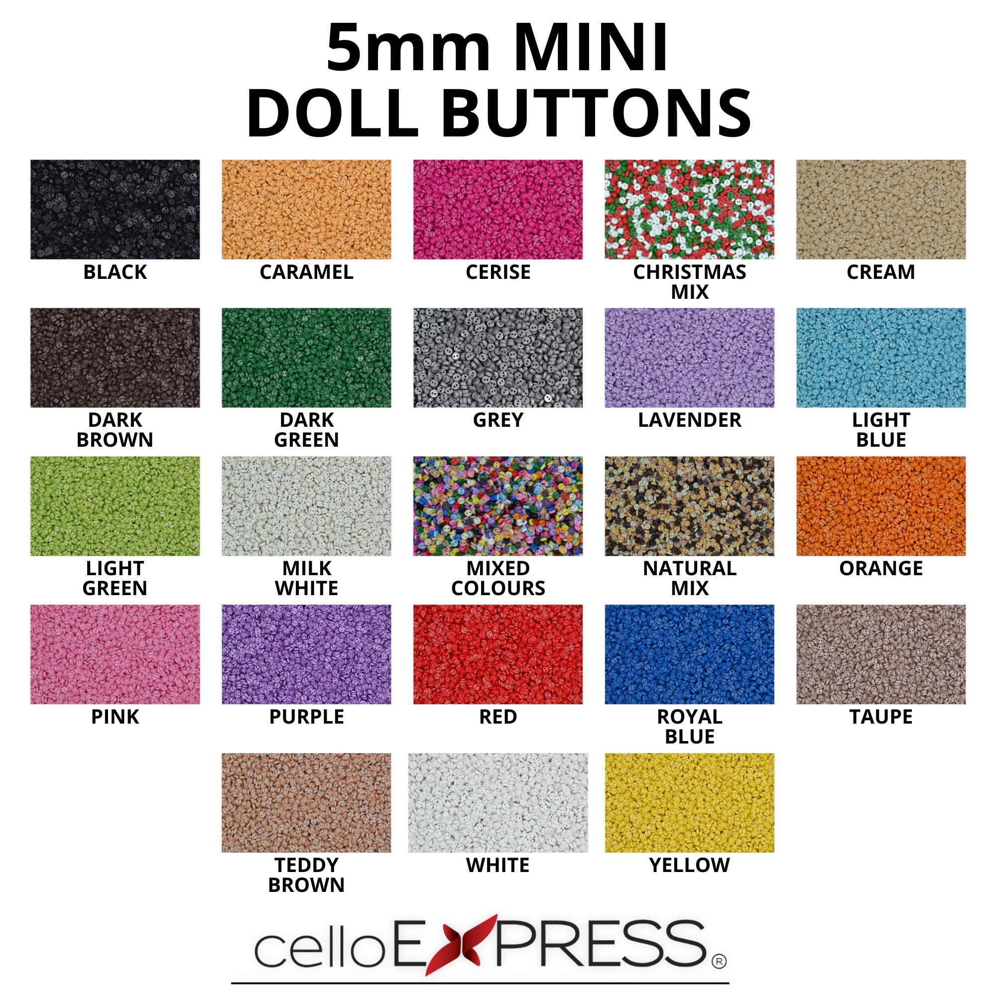 5mm Round Mini Doll Buttons in Natural Mix. Can be used for many things such as dolls and soft toy clothes, scrapbooking, crafting, card making and more.