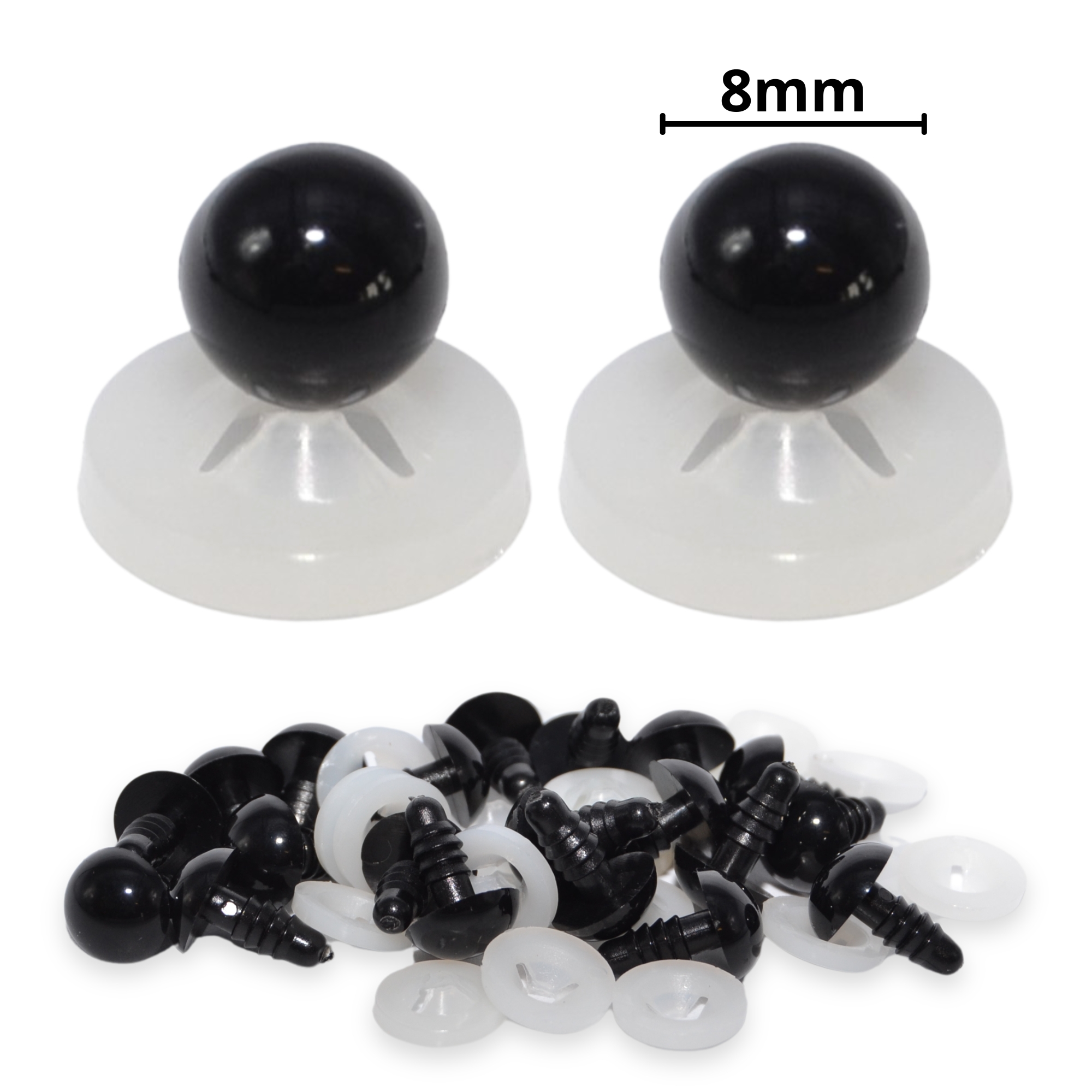 8mm Solid Black Dome Eyes with Plastic Backs