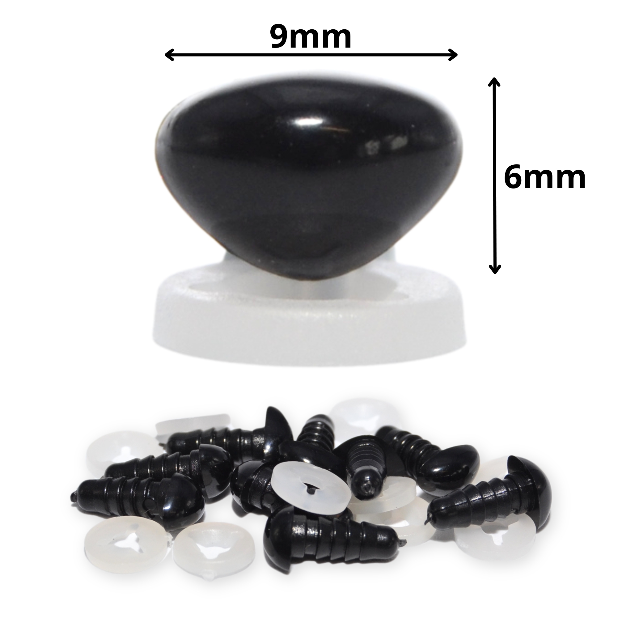 9mm x 6mm Black Triangle Nose with Plastic Backs