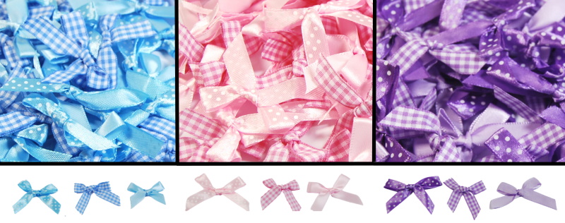 These Small Satin Bows come in packs of 60, containing 3 different patterns: