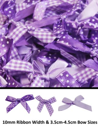 The ribbon width is 10mm, and the bow lengths range from 3.5cm to 4.5cm
