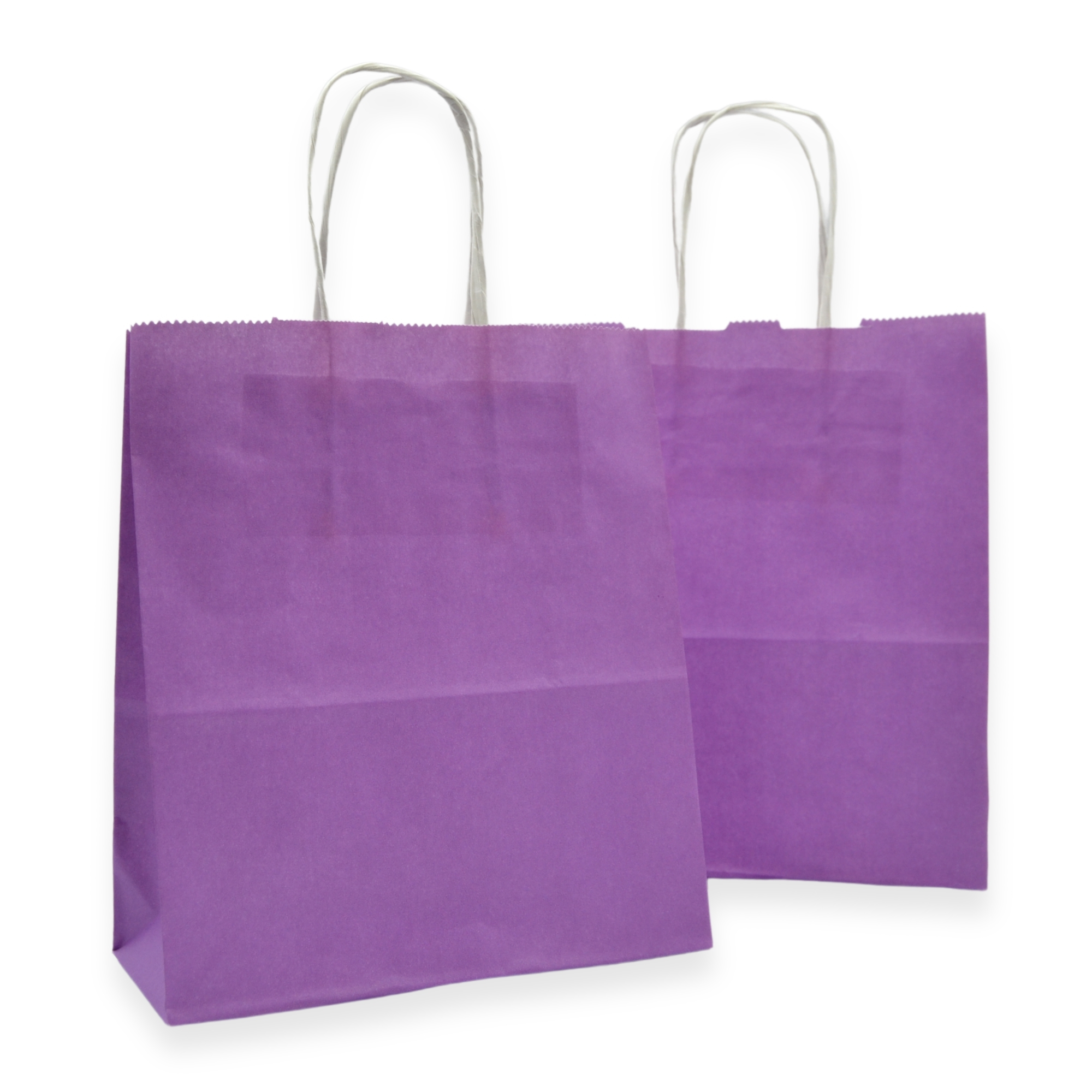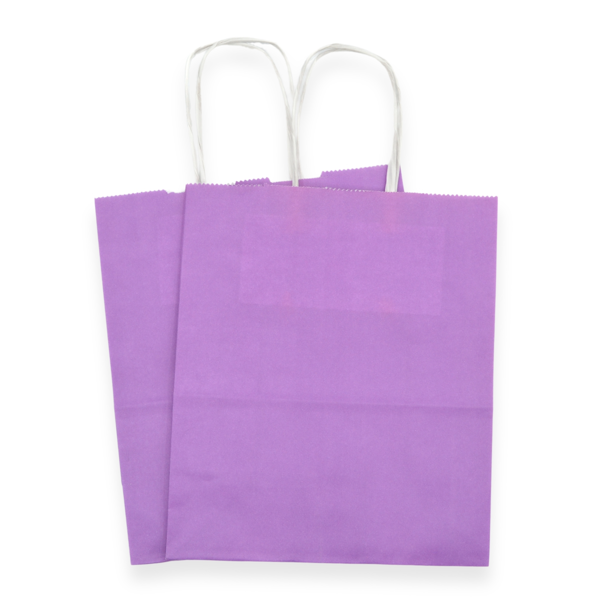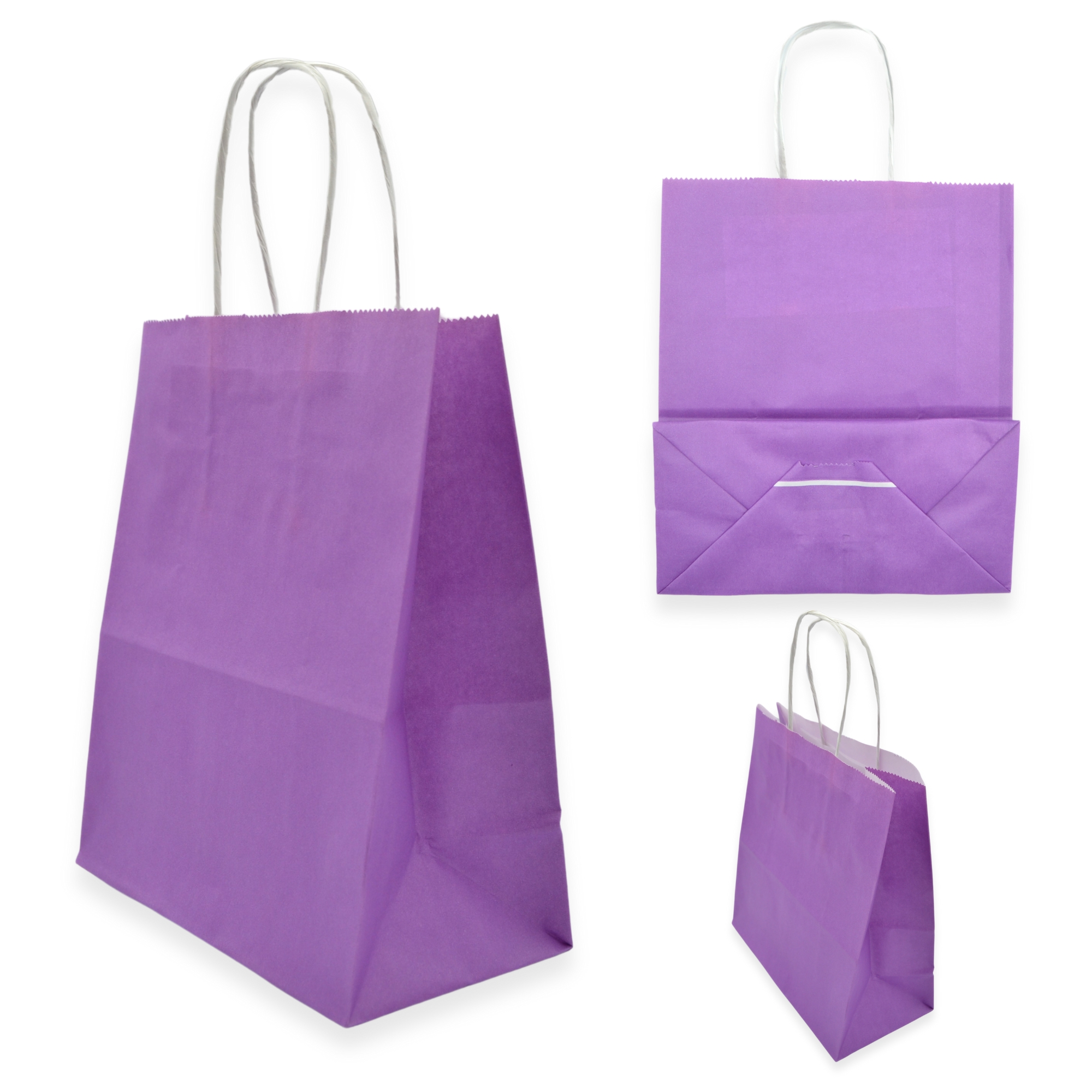 Paper Party Bags great for kids parties, goodie bags and gifting. Bright Lilac with white paper and white twist handles.