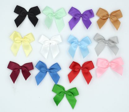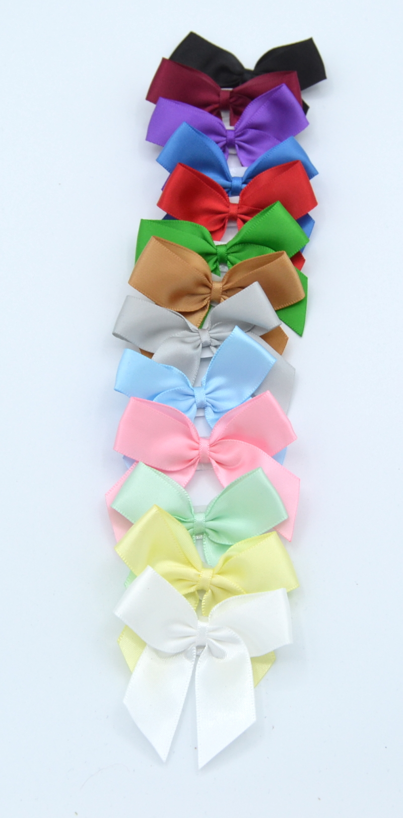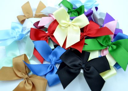 These are pre-tied satin bows, ready for placing on to presents, gifts, bunting, arts and crafts projects, hairbands & hair accessories, children’s clothes & many more uses!