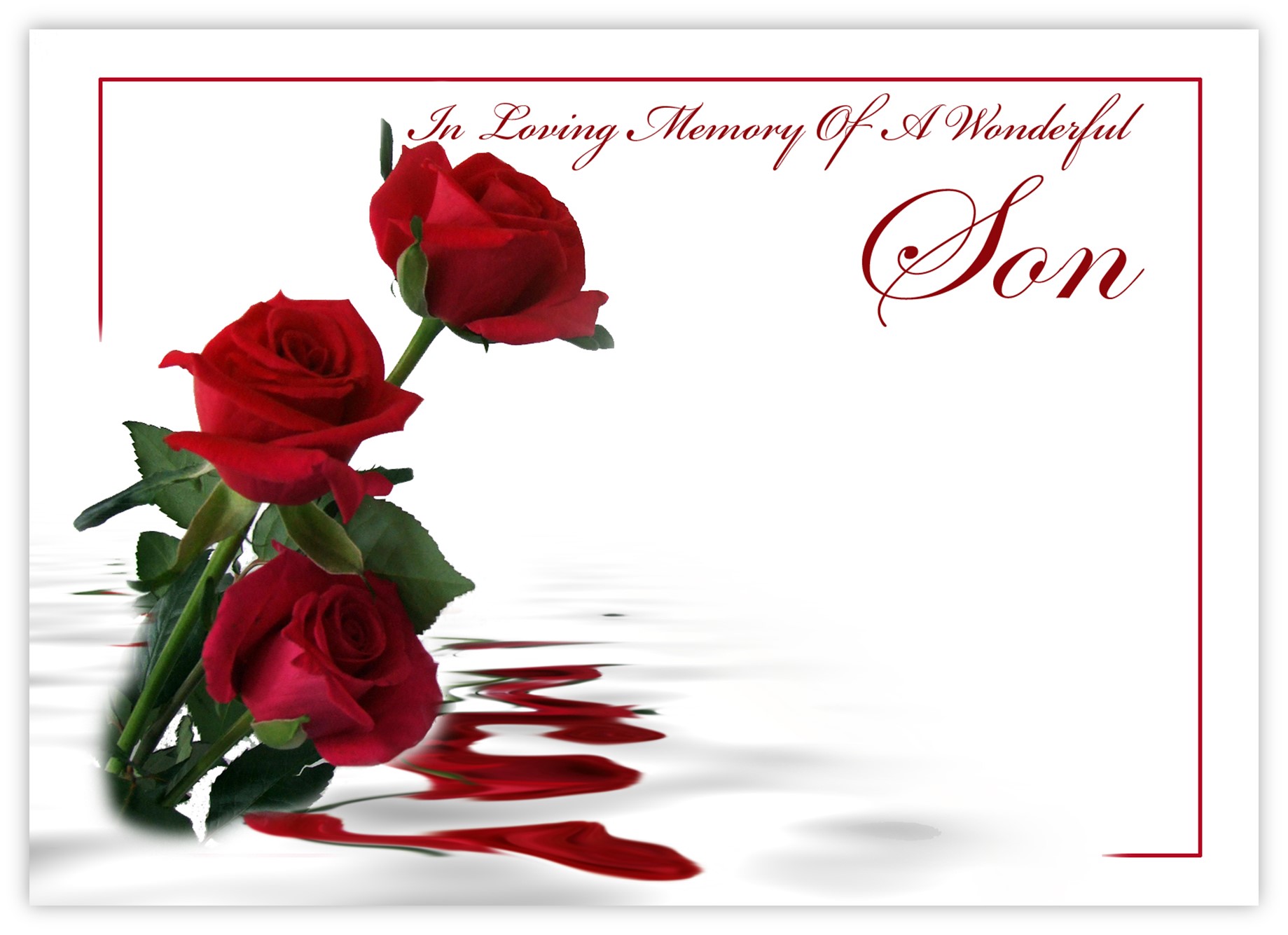 In Loving Memory Son (3 Red Roses) – 90mm x 125mm Florist Cards