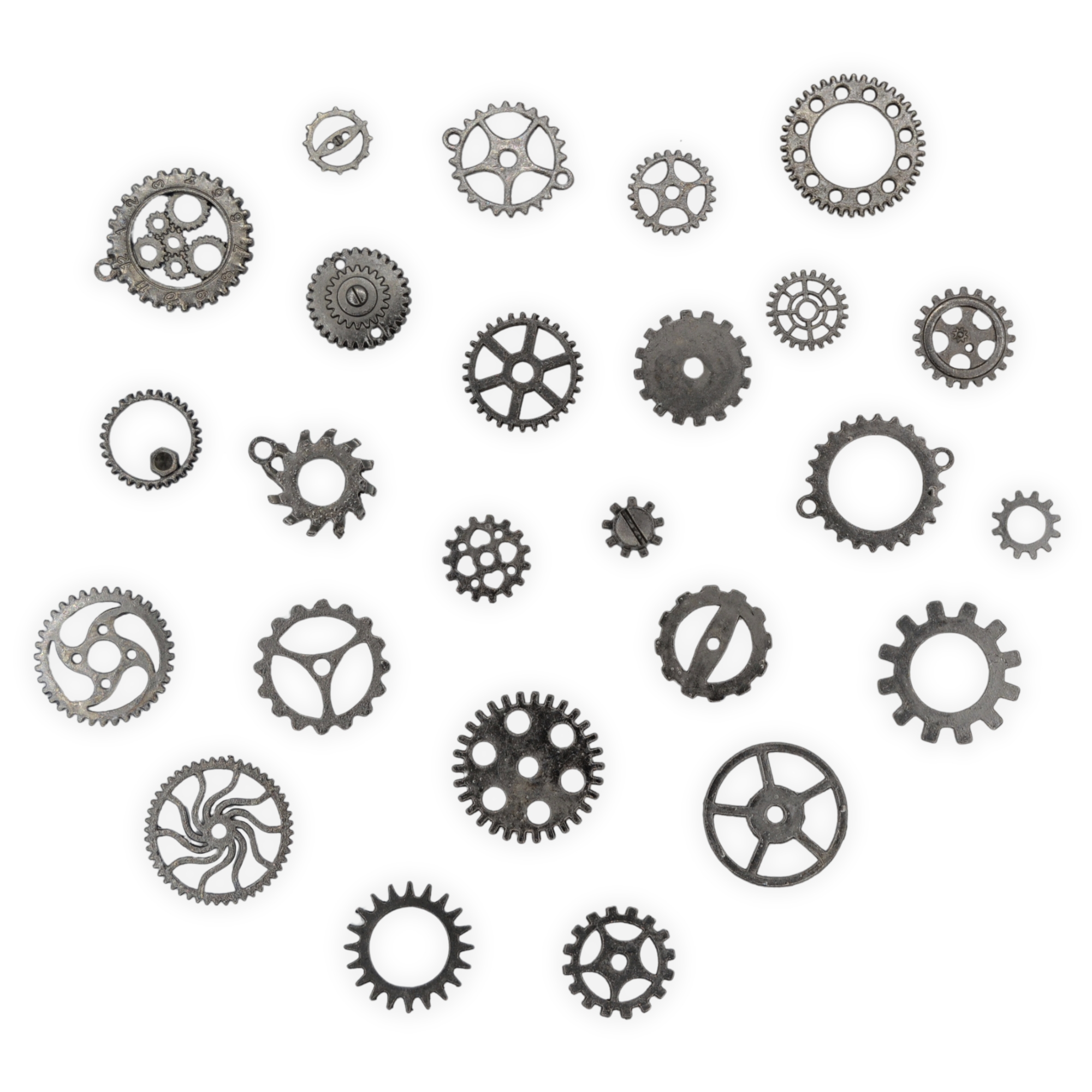A pack of mixed cogs, can be used in jewellery making and craft projects.