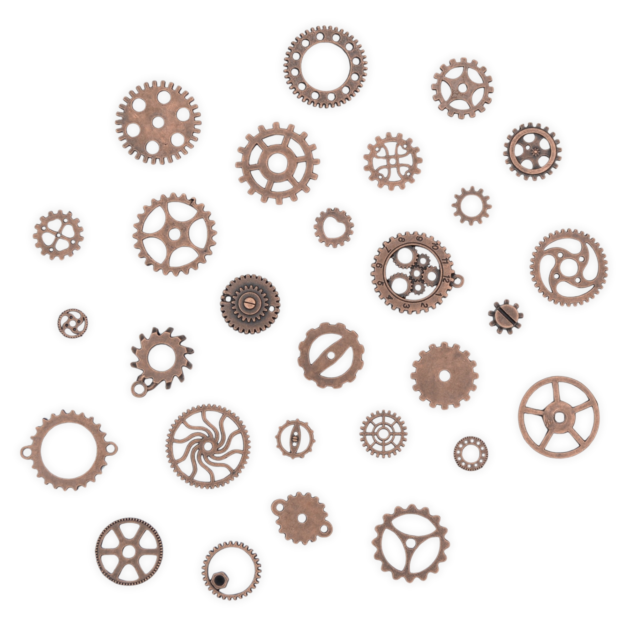 Mixed Pack 16 Steampunk Cogs – Red Copper