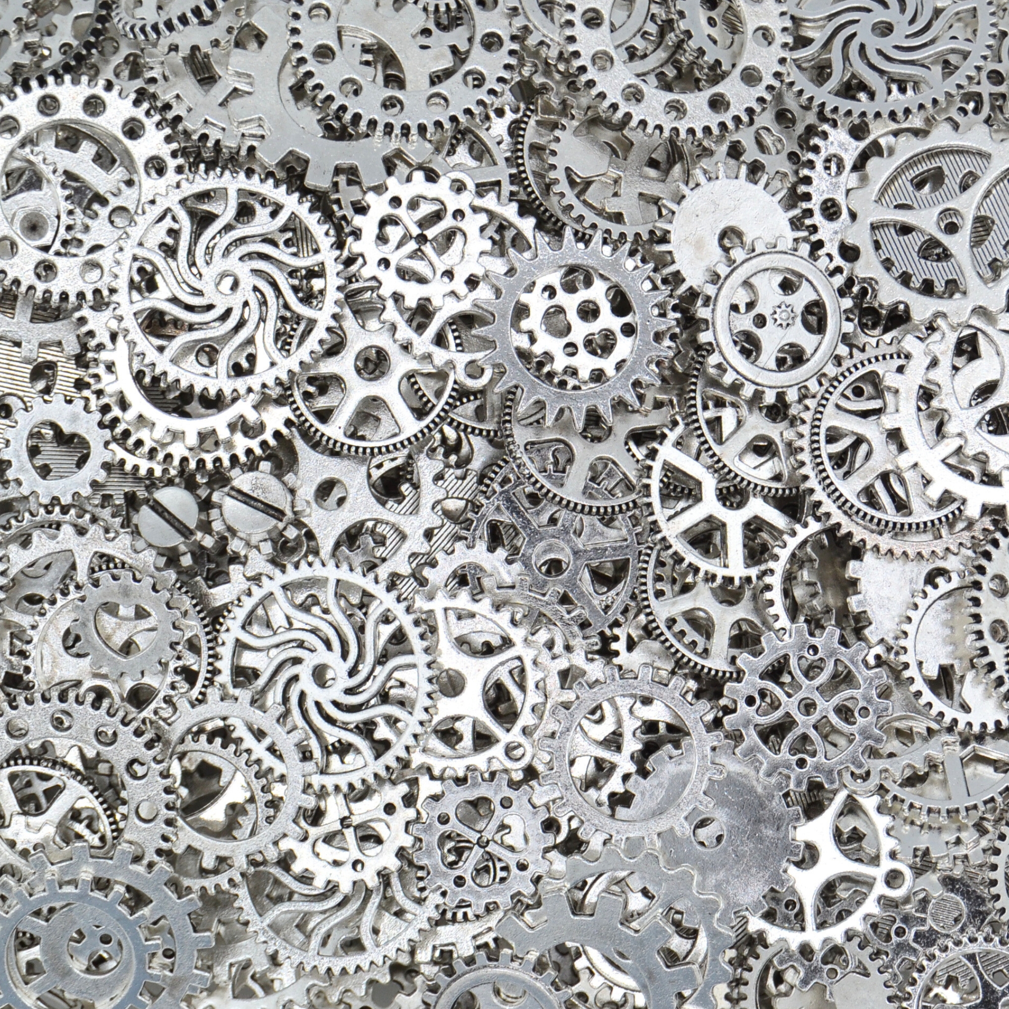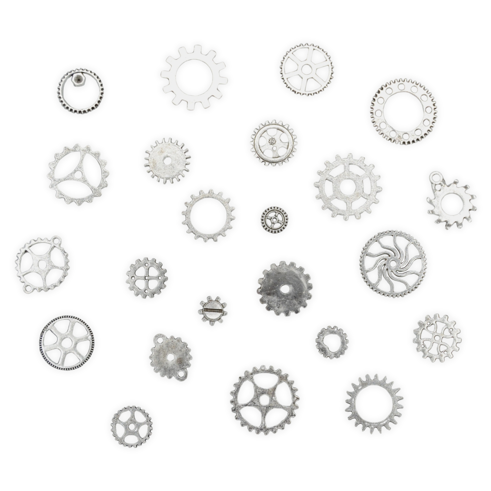 A pack of mixed cogs, can be used in jewellery making and craft projects.